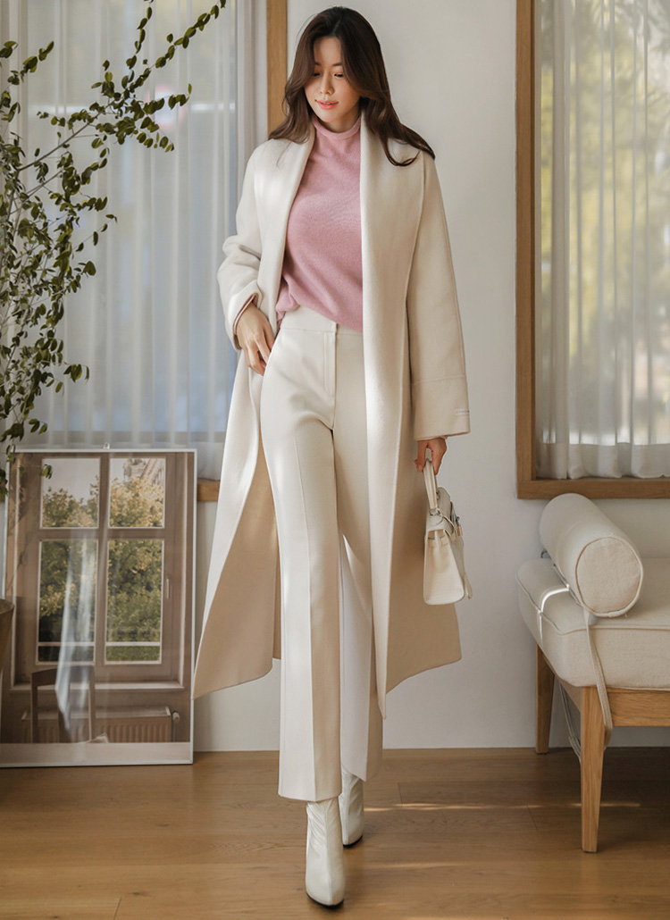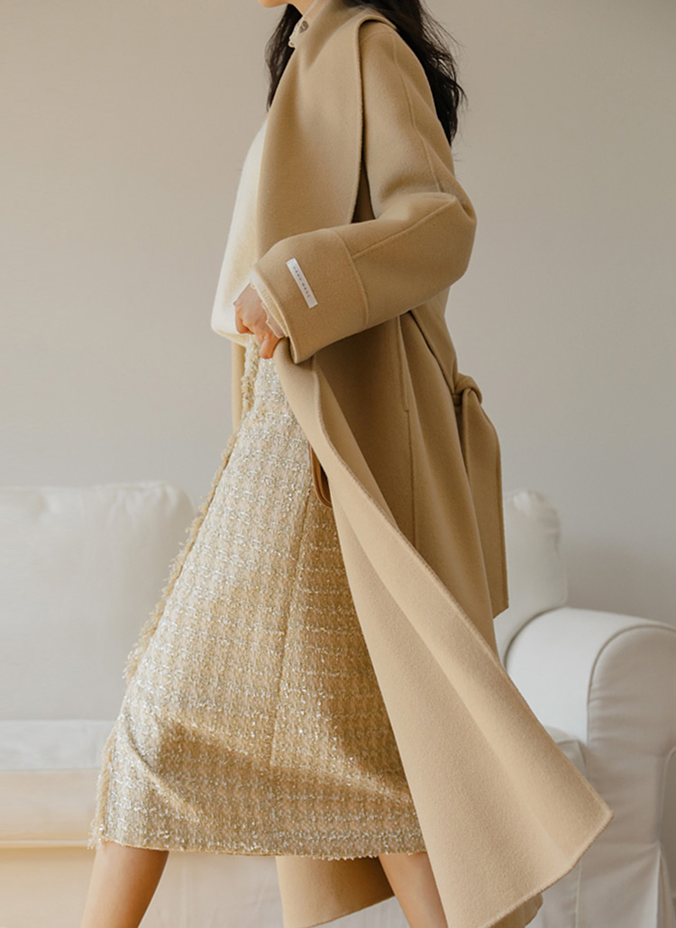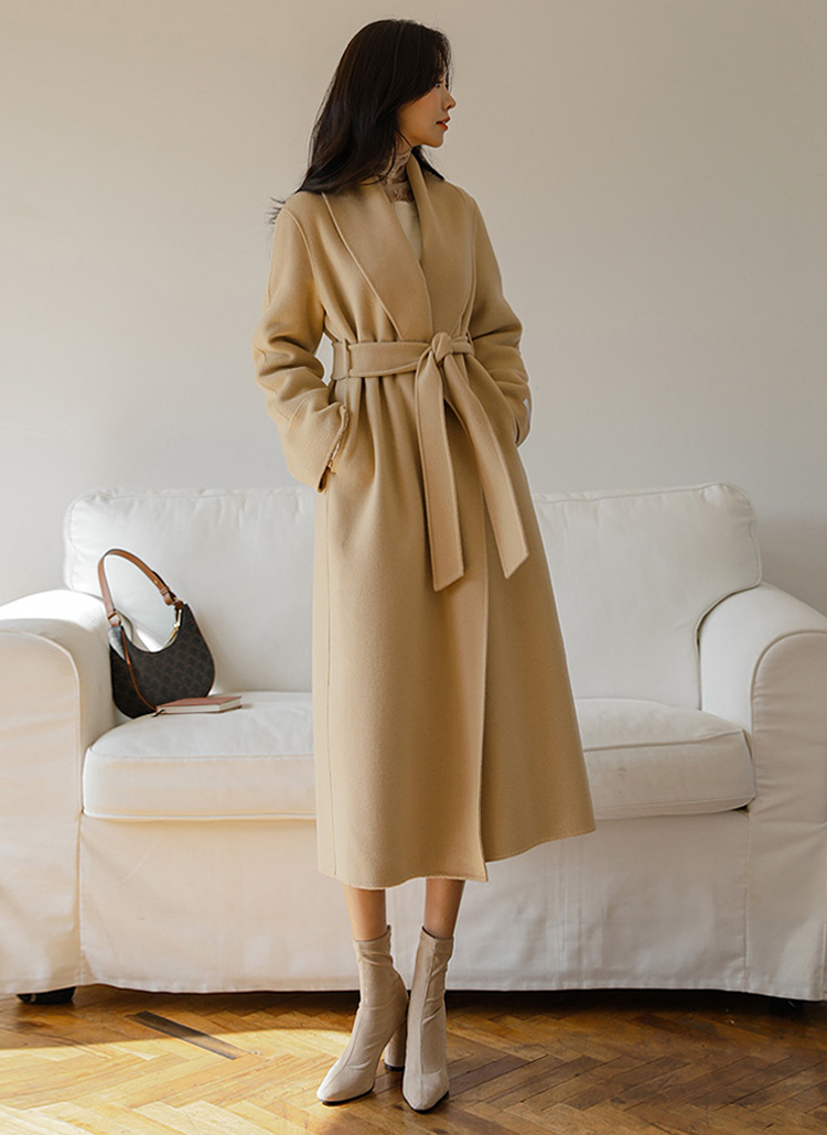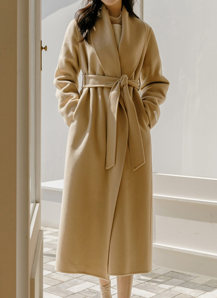 • 适合每年穿的披肩领,给人干练感觉的魅力大衣,干净利落的一字型垂坠的版型,用束带抓住腰部线条,可以调节苗条的版型。柔软的触感,一整天心情好的穿着感!