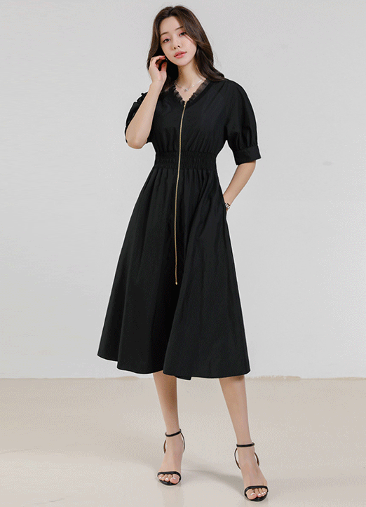 • [Louis Angel]五分袖亚麻腰带连衣裙