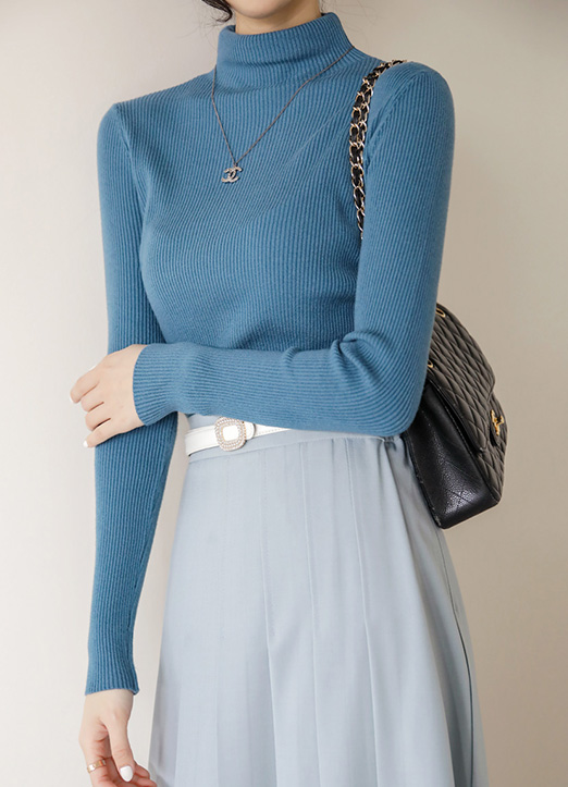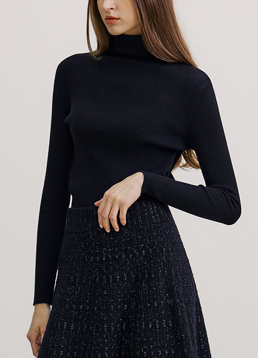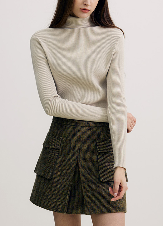 [THE ONME] 修身宽竖条纹高领针织衫
