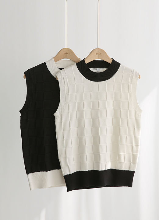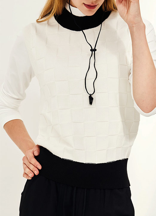 [QoG] 方形格纹拼色高尔夫针织背心