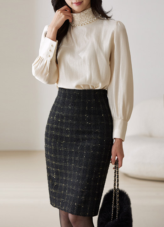 더 고급스럽고 우아한 무드를 선사하는 트위드 스커트에요