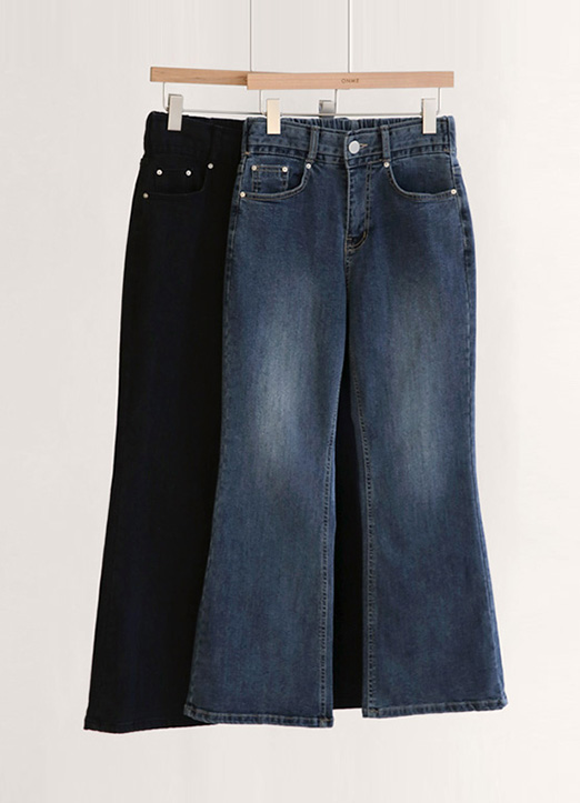 뒷밴딩 디테일로 편안하게 입어지는 부츠컷 데님 팬츠에요 :)