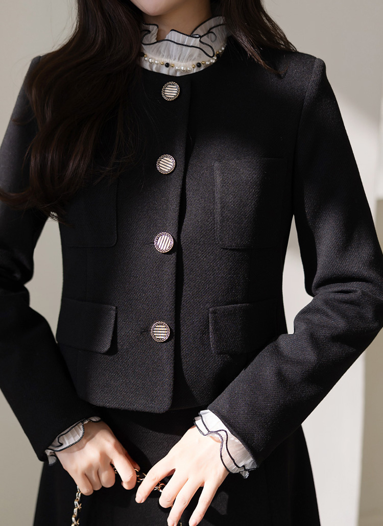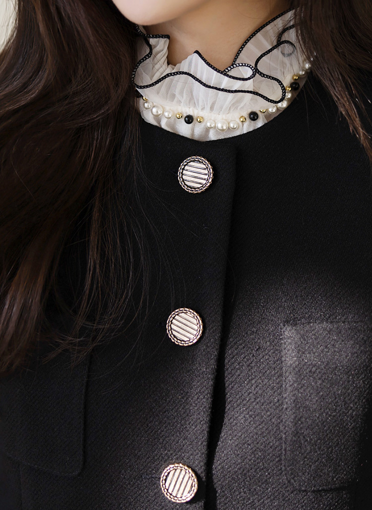 볼드한 골드컬러 주얼리 버튼으로 더욱 멋스러우며