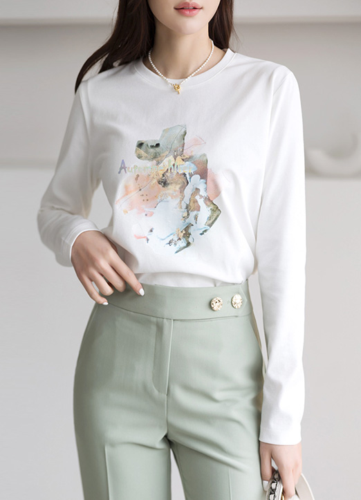 물들인 듯한 수채화 프린팅이 소프트한 무드를 연출해주며