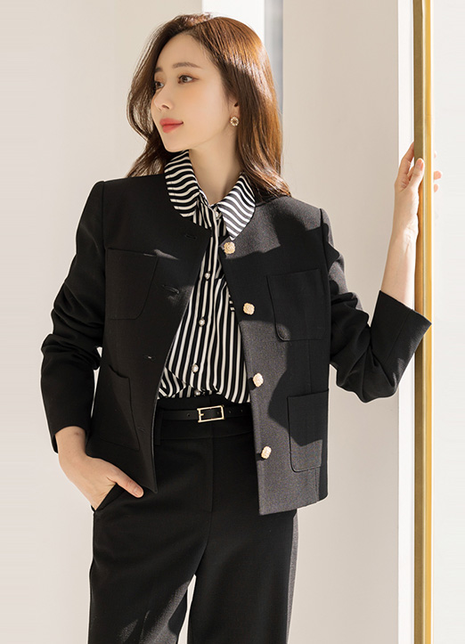 세미 크롭에 깔끔한 노카라 디자인으로 나와