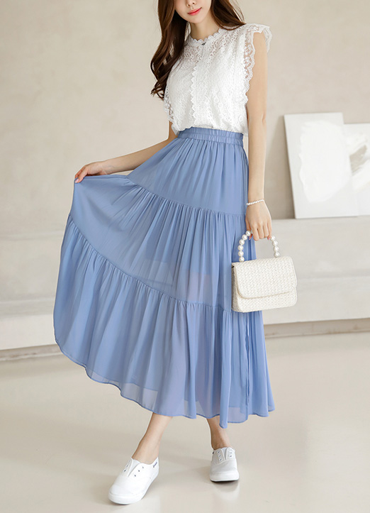 얇고 가벼운 무게감으로 여름내내 시원하게 즐기시기 좋은 롱스커트에요