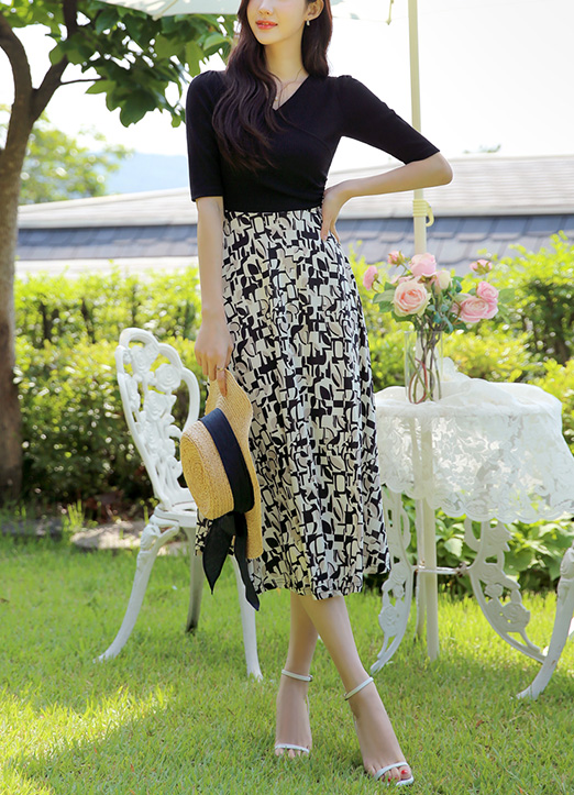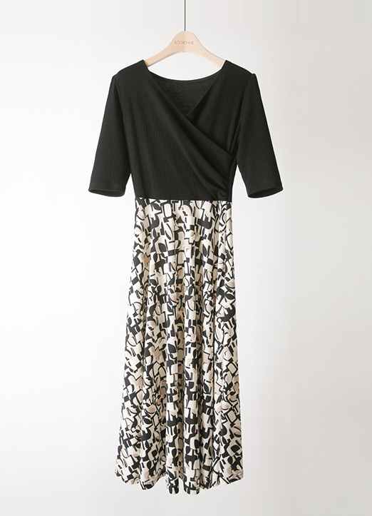 [Louis Angel] 条纹裹身拼接喇叭式连衣裙