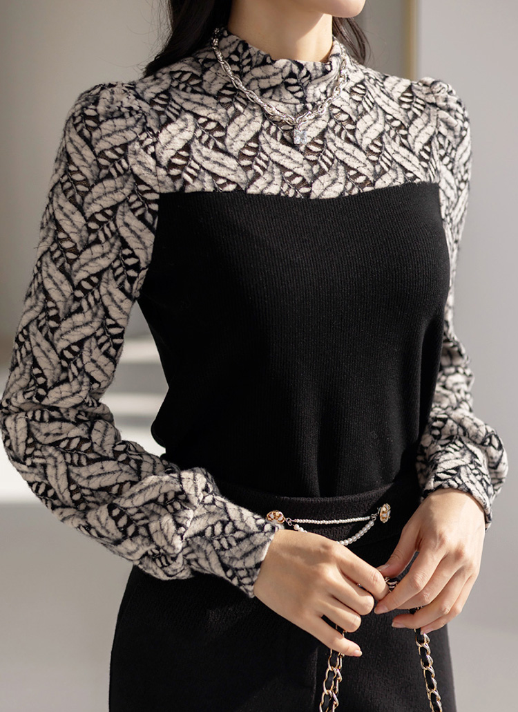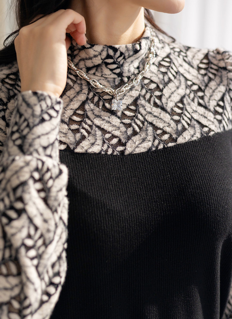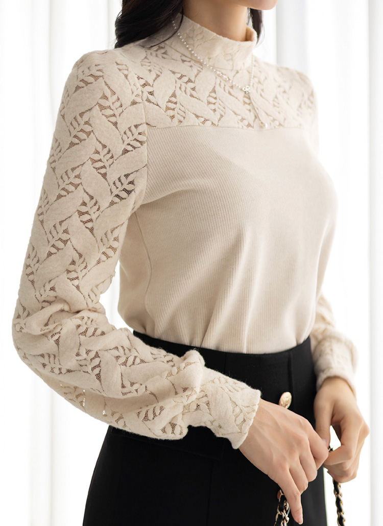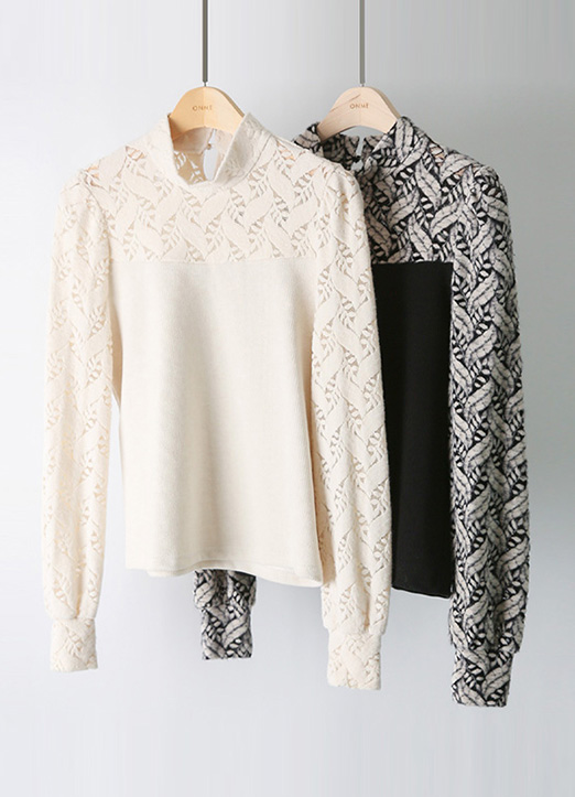 [LouisAngel] 델루이 포근 기모 리프 레이스 골지 레이어드 블라우스 티