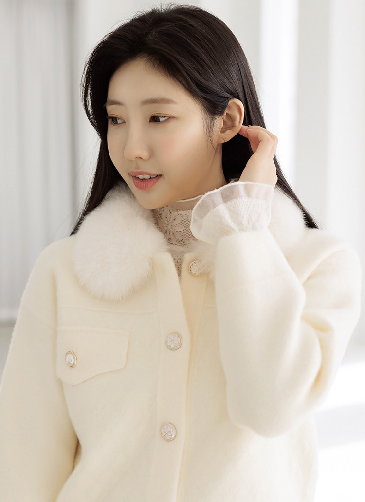 엔디엘 포근 날개사 퍼 카라 쥬얼버튼 니트 가디건 자켓