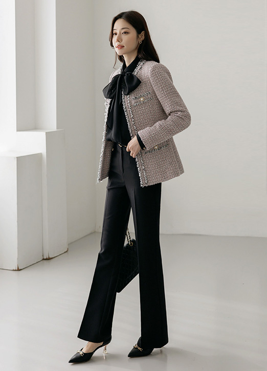 더욱 구조적이면서 고급지게 돋보이는 매력만점 트위드 자켓이에요