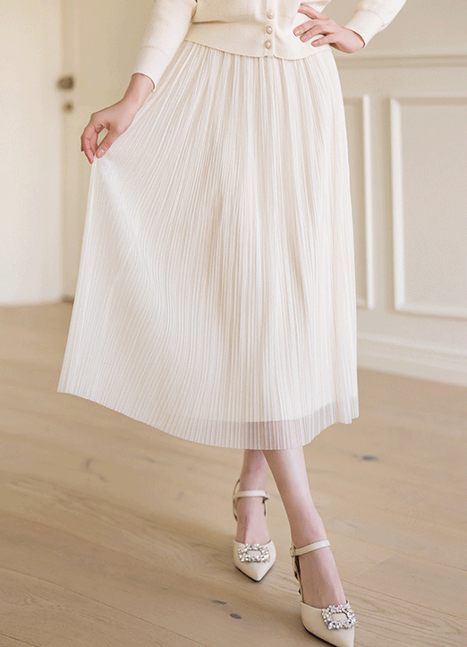 메리벨 뒷밴딩 핀턱 셔링 플레어 A라인 롱 스커트