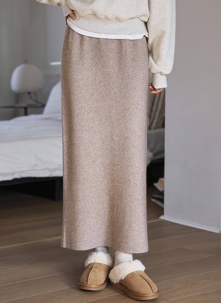 [Theonme] 포근 도톰한 두께감 밴딩 H라인 니트 롱 스커트