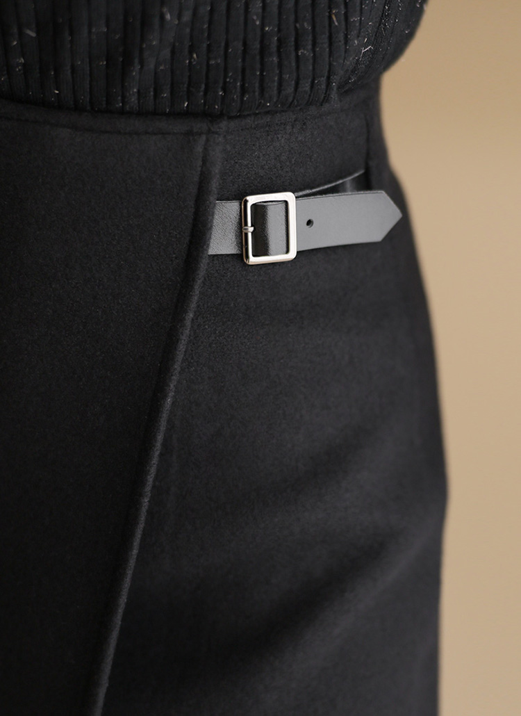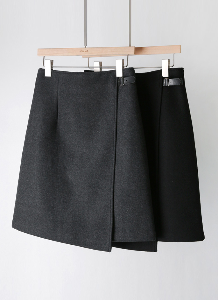 세인츠 언발란스 랩 디자인 사이드 벨티드 미디 스커트