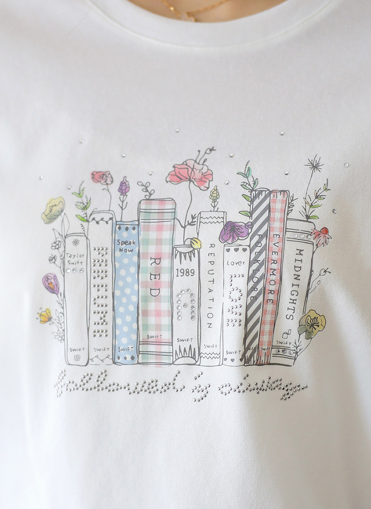 [LouisAngel] 플라워 파스텔 노트 블링 포인트 프린팅 티셔츠
