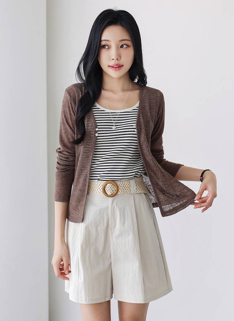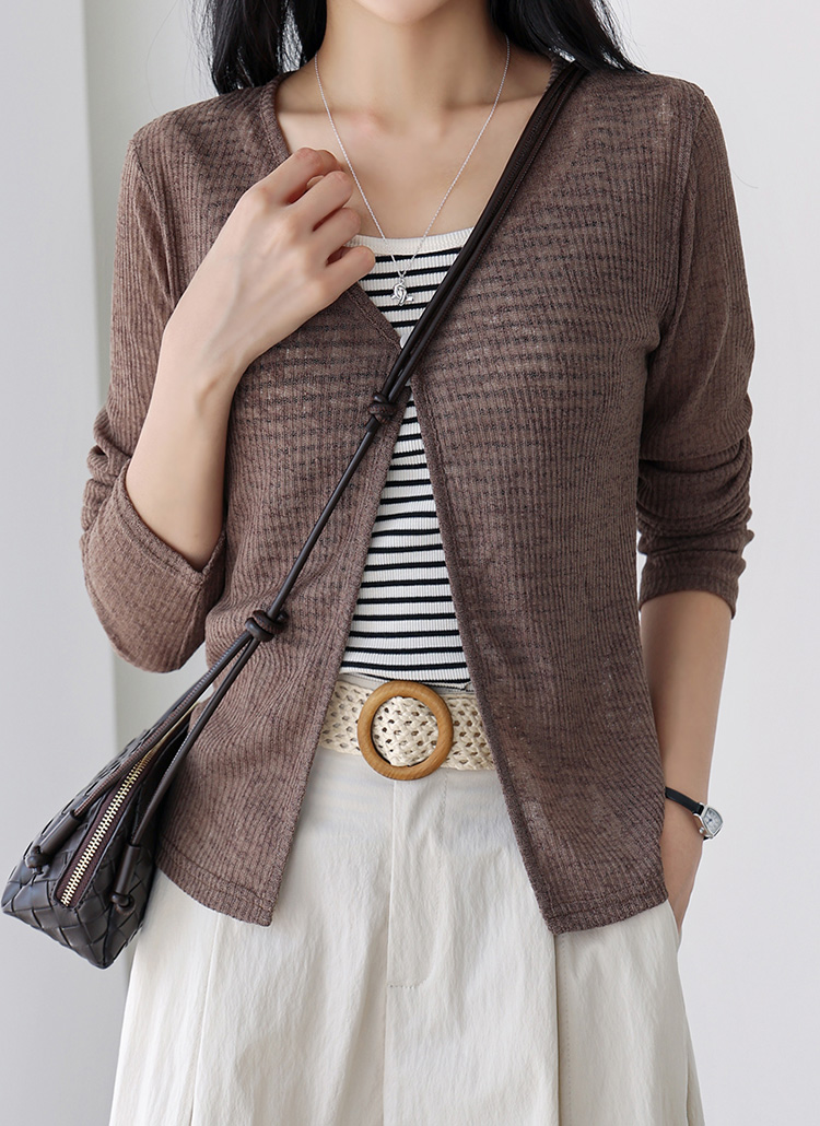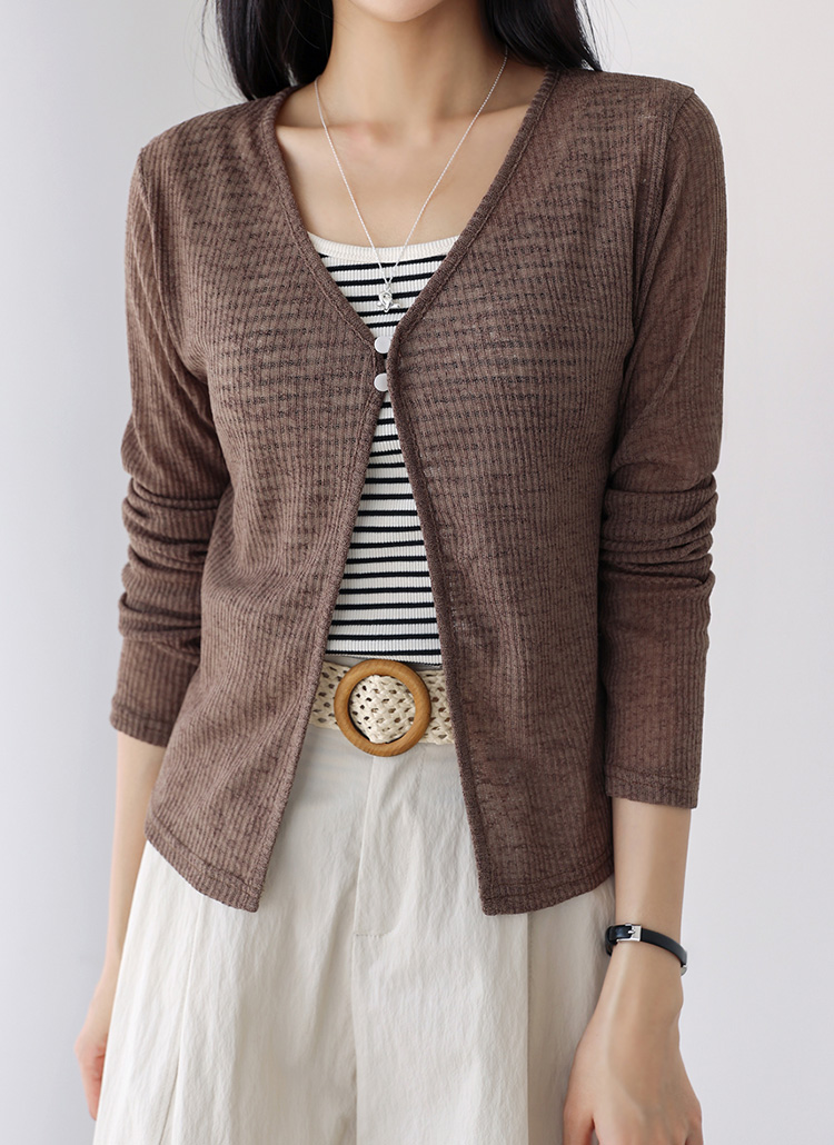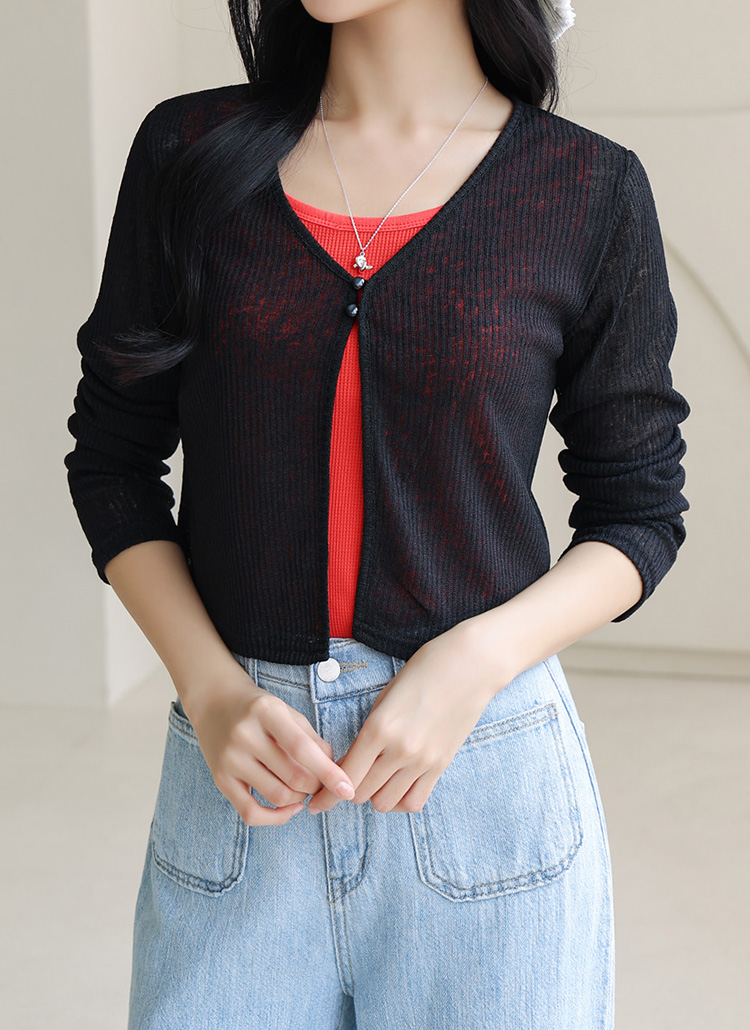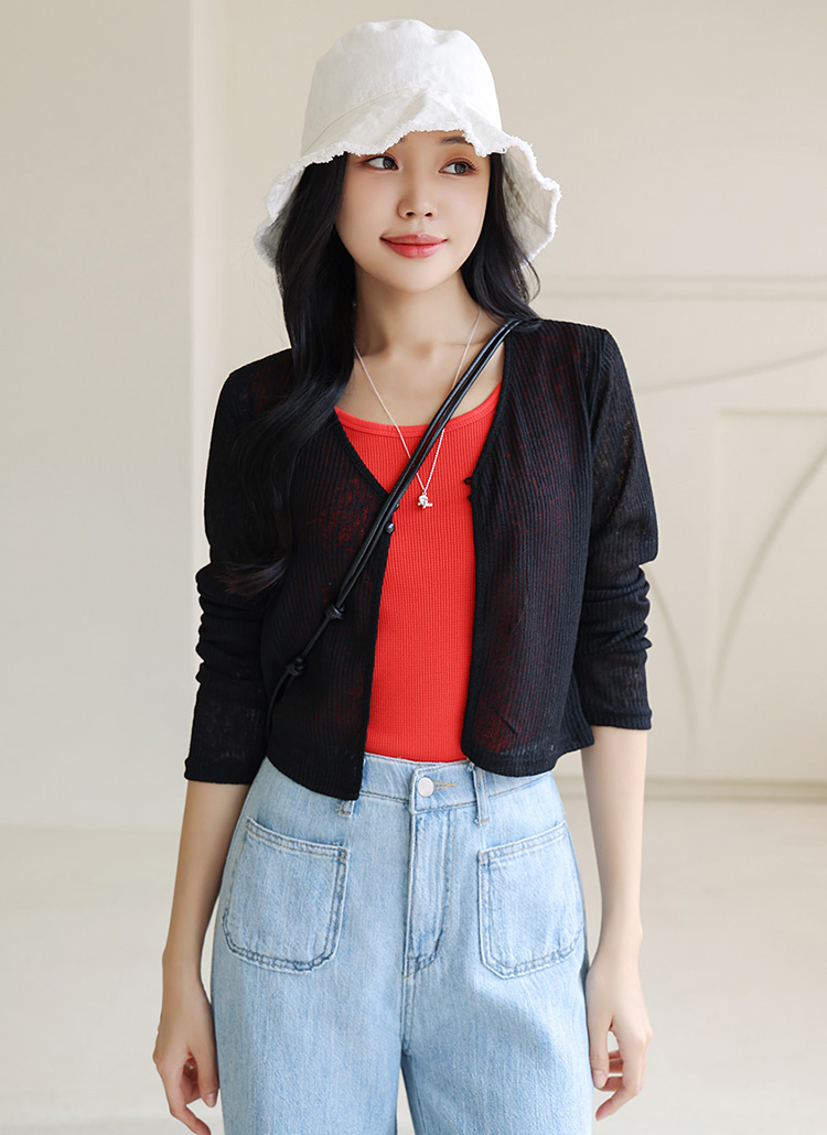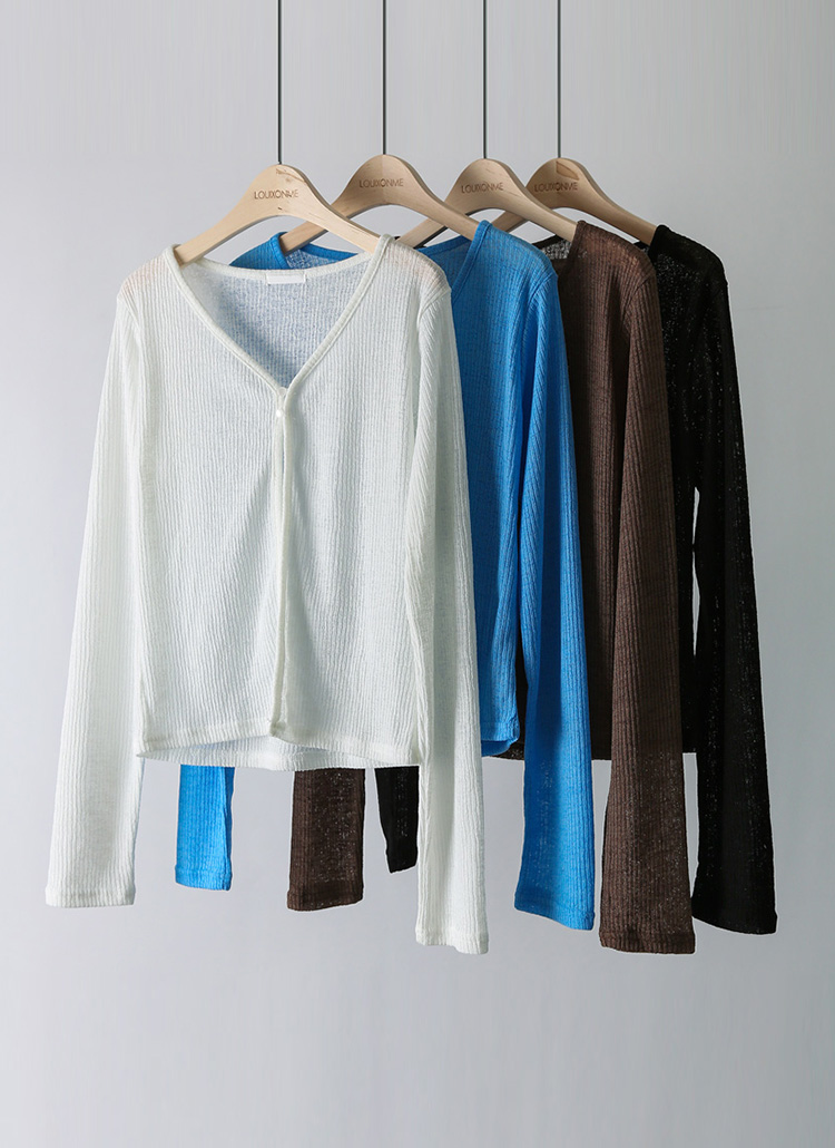 [Theonme][숏/롱 두가지 기장] 썸머 시스루 골지 브이넥 볼레로 가디건