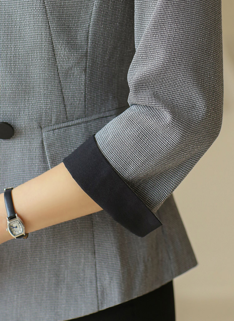 타이니 사각 패턴 배색 롤업 7부 소매 페미닌 슬림라인 자켓