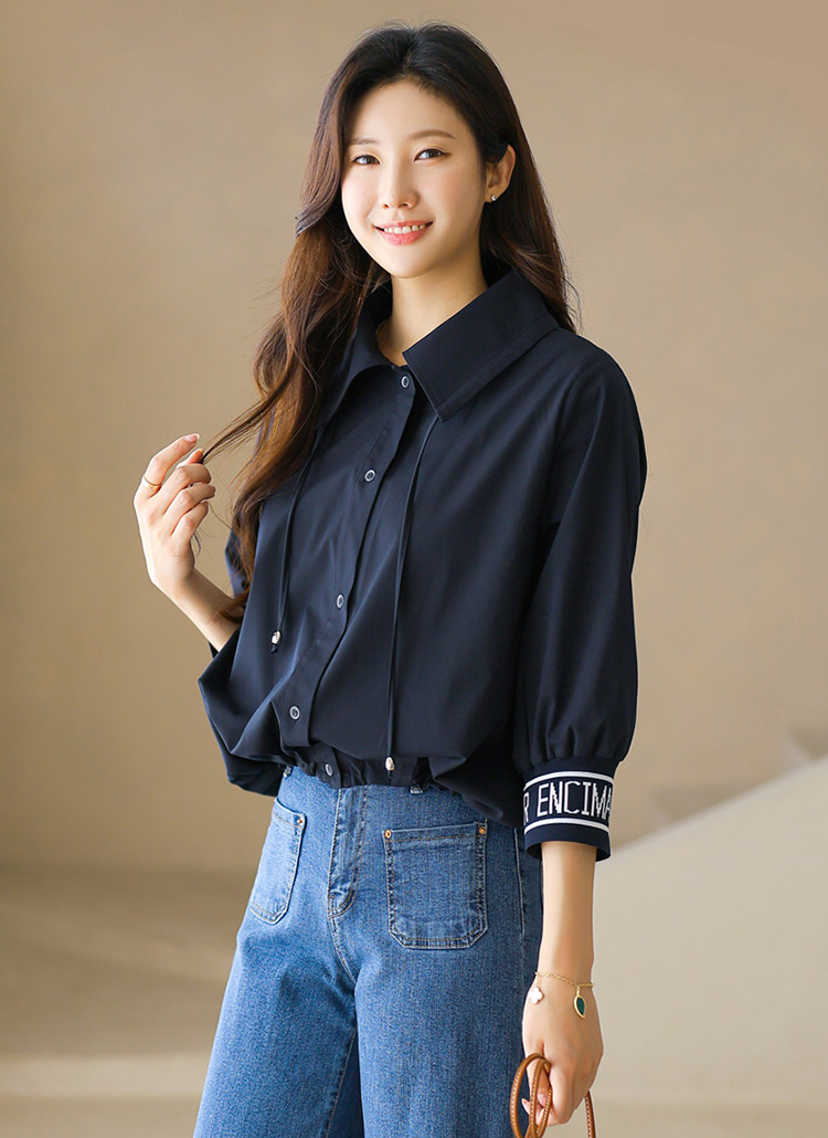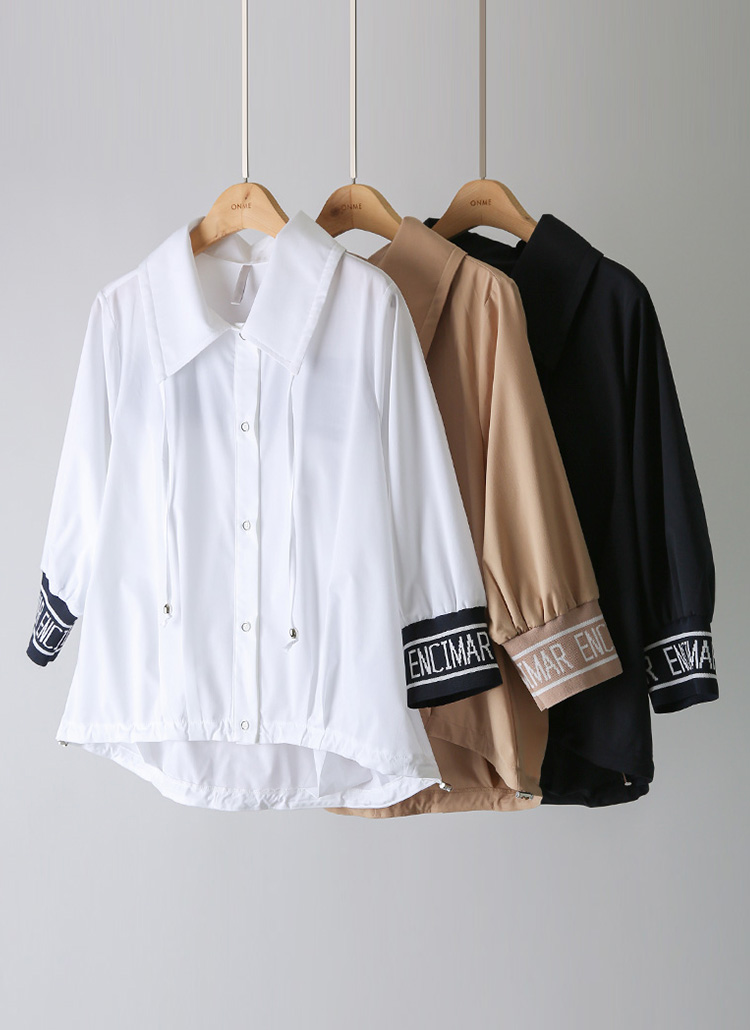 • 포리즈 레터링 시보리 밴딩 배색 하이넥 와이드 카라 남방 셔츠