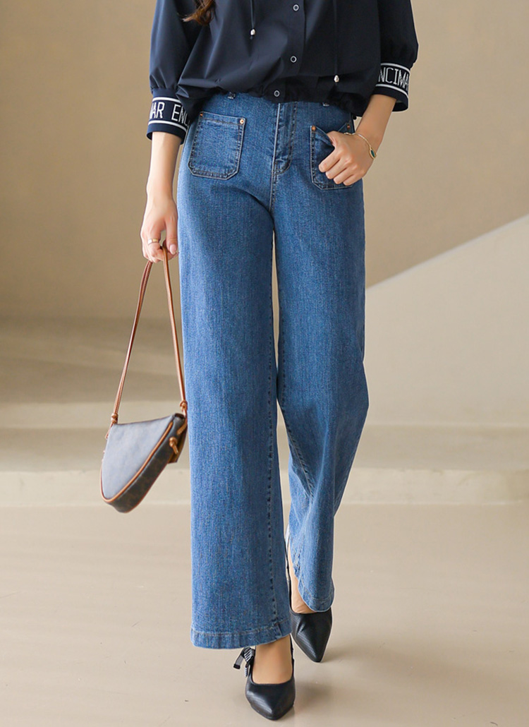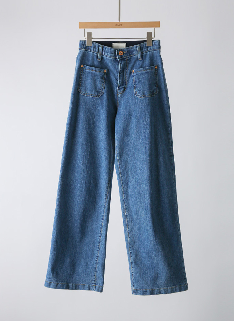 • 이니드 아웃포켓 히든밴딩 스트레이트 세미 와이드 데님 팬츠