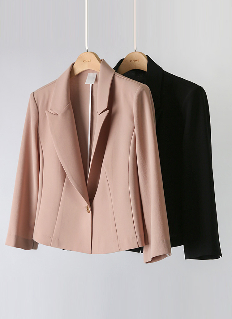 • 실키하게 차르르 원턱 세미 크롭 원버튼 싱클 테일러드 자켓