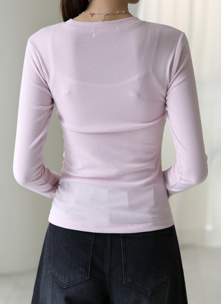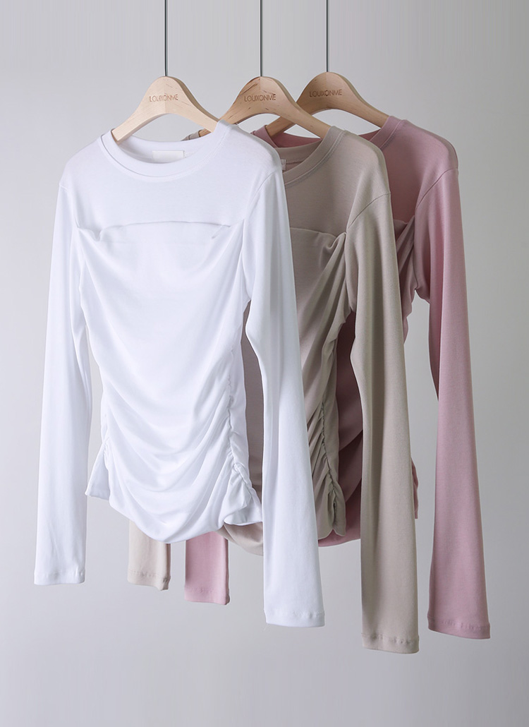 블레아 이중 셔링 레이어드 슬림 라인 라운드 긴팔 티셔츠
