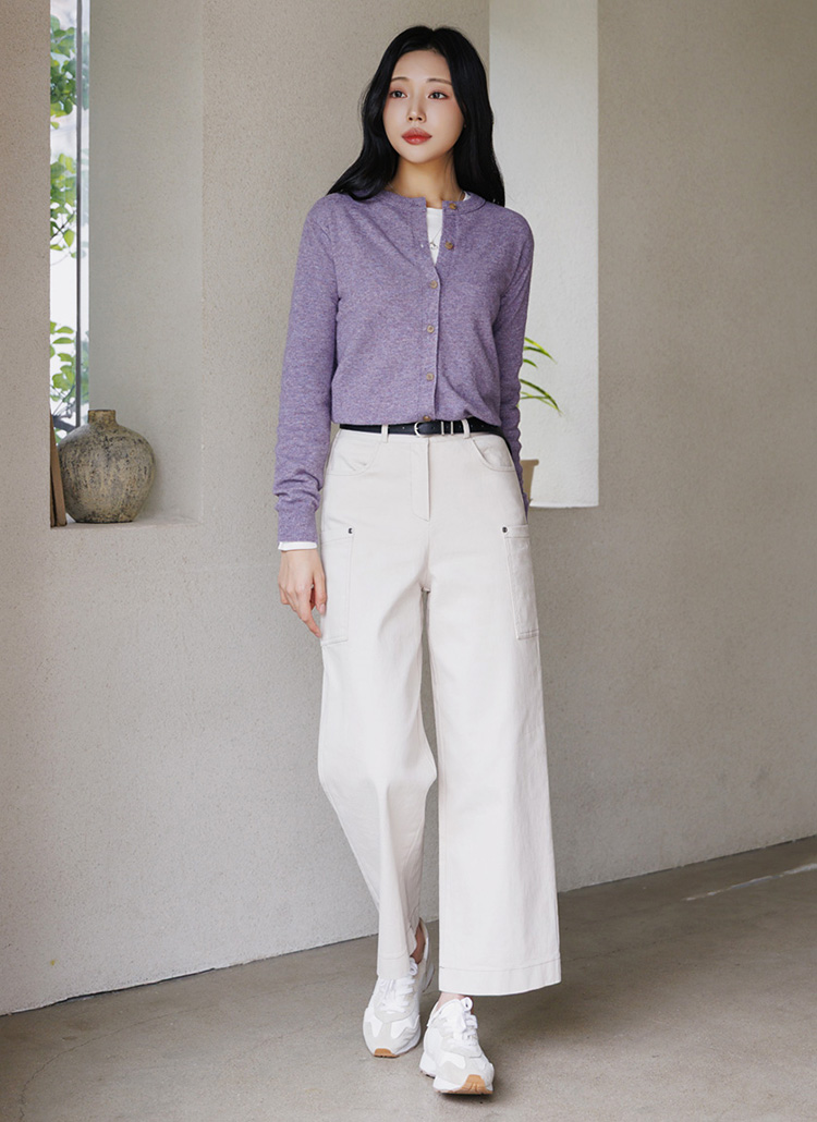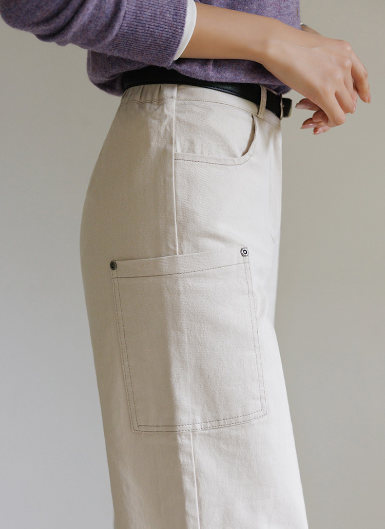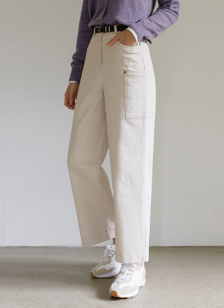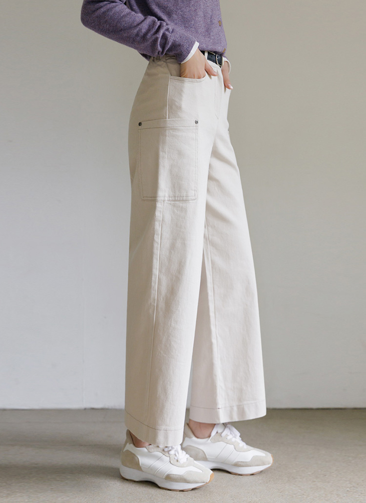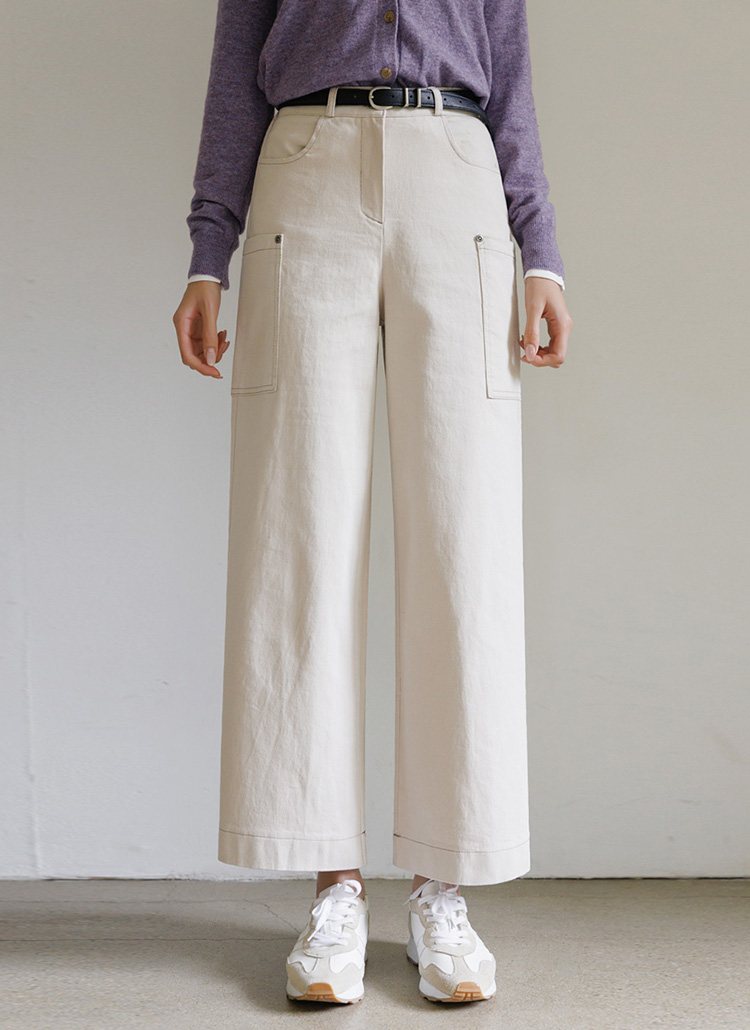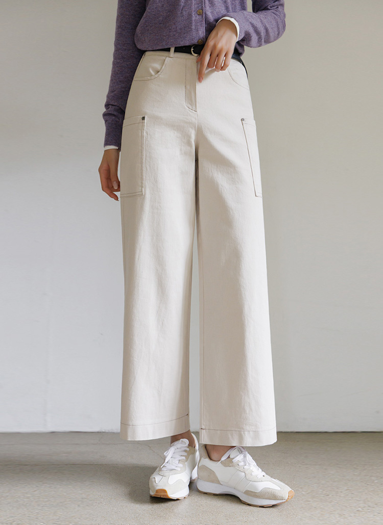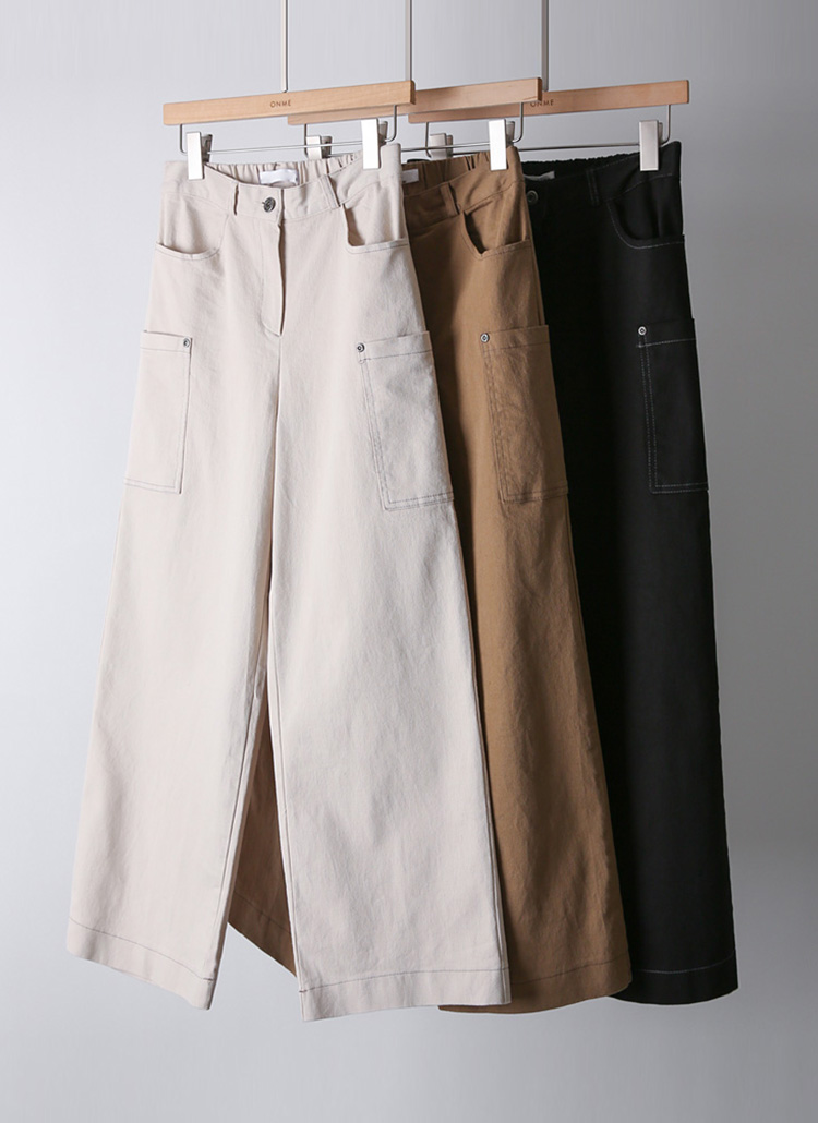 [Theonme] 테르비 카고 포켓 스티치 와이드 코튼 팬츠