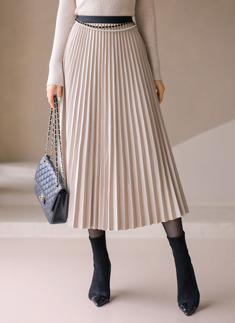 웬디블 도톰 따뜻 허리 밴딩 플리츠 A라인 롱 스커트