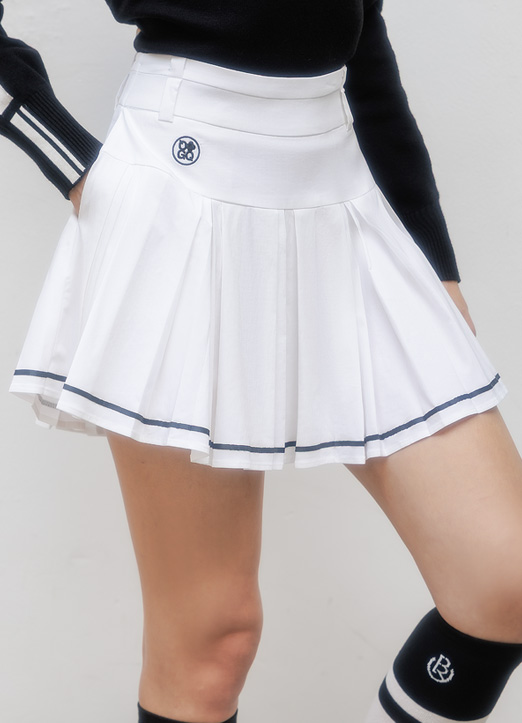 [QoG] 골프 로고자수 라인 플리츠 미니 스커트