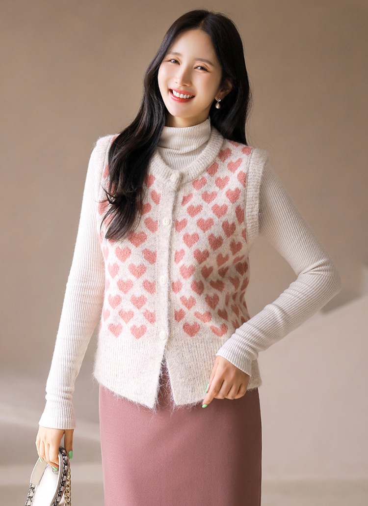 소다미 러블리 하트 포근포근 니트 조끼 베스트