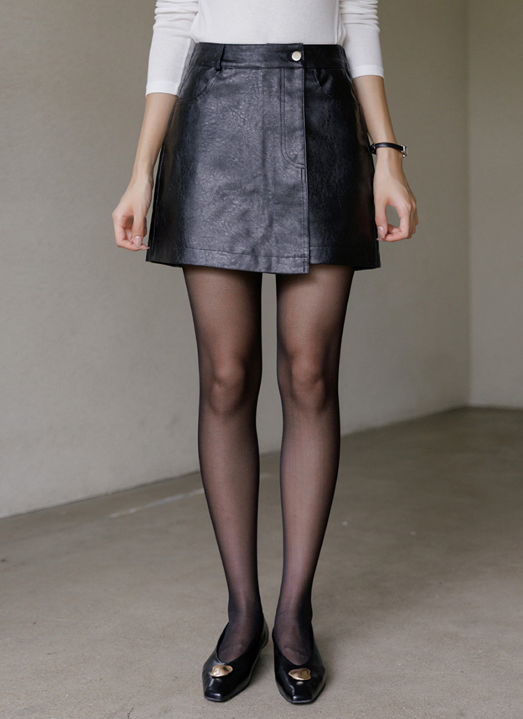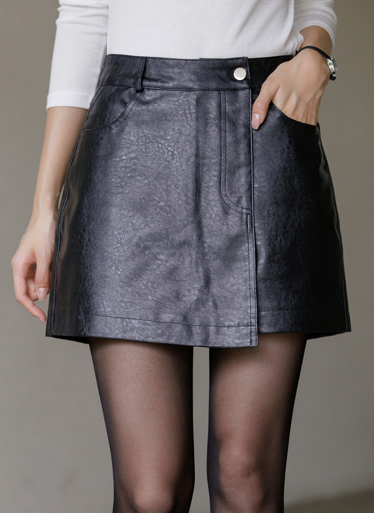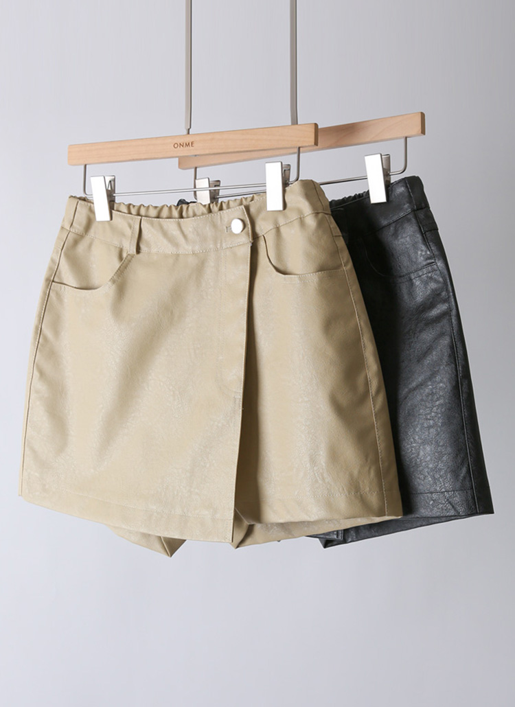 [Theonme] 후이로 뒷밴딩 레더 랩 치마 바지 숏팬츠