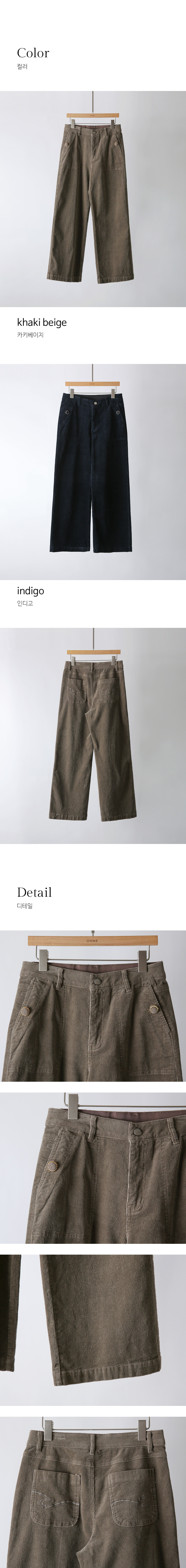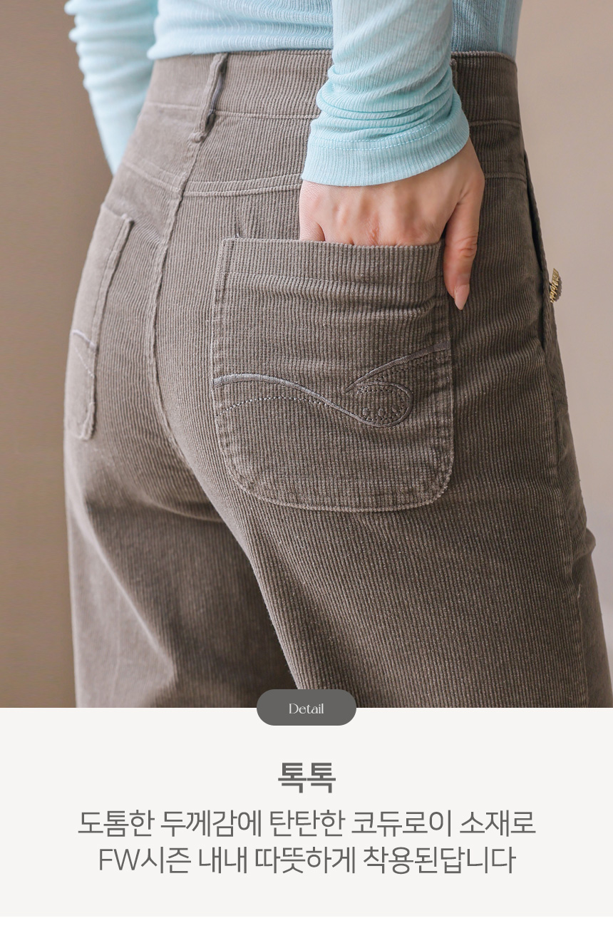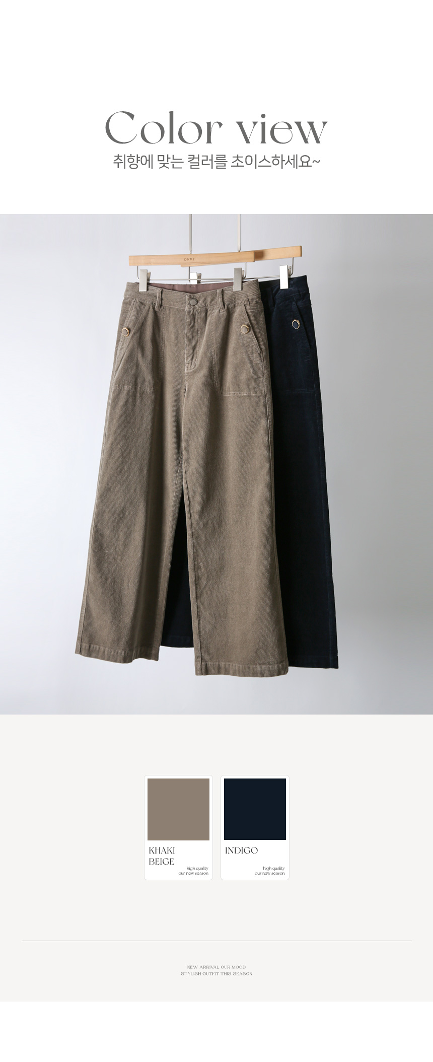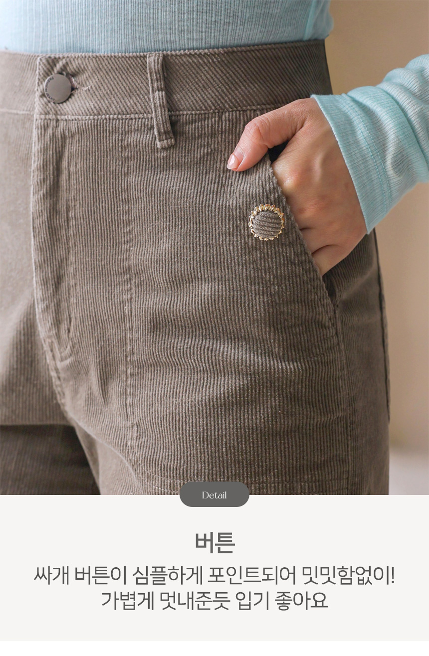 올리버 버튼 포인트 포근 웜터치 코듀로이 세미 와이드 일자 팬츠