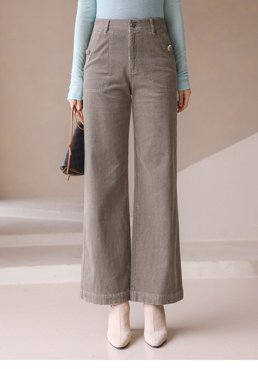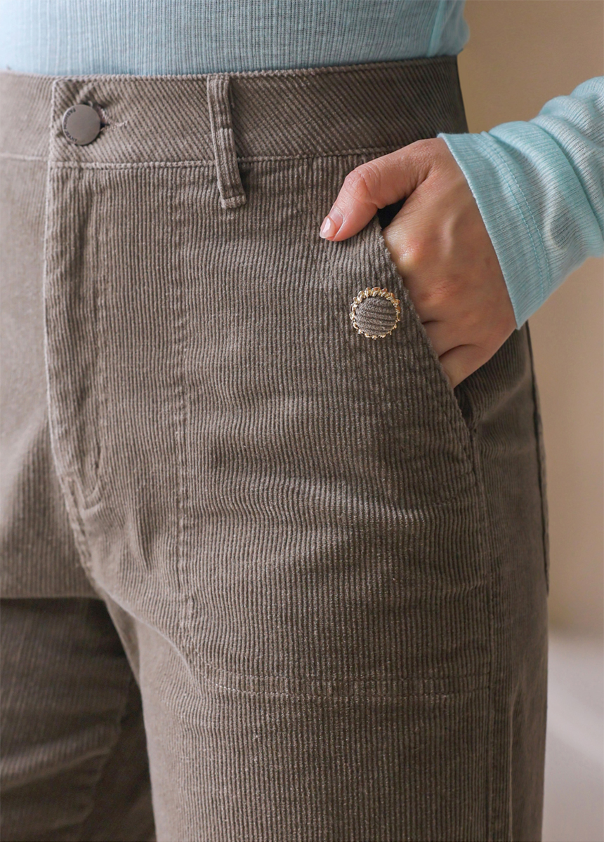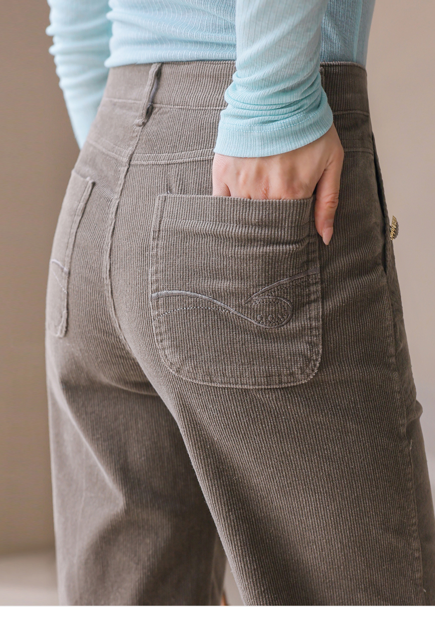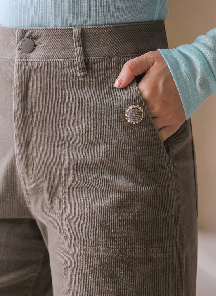올리버 버튼 포인트 포근 웜터치 코듀로이 세미 와이드 일자 팬츠