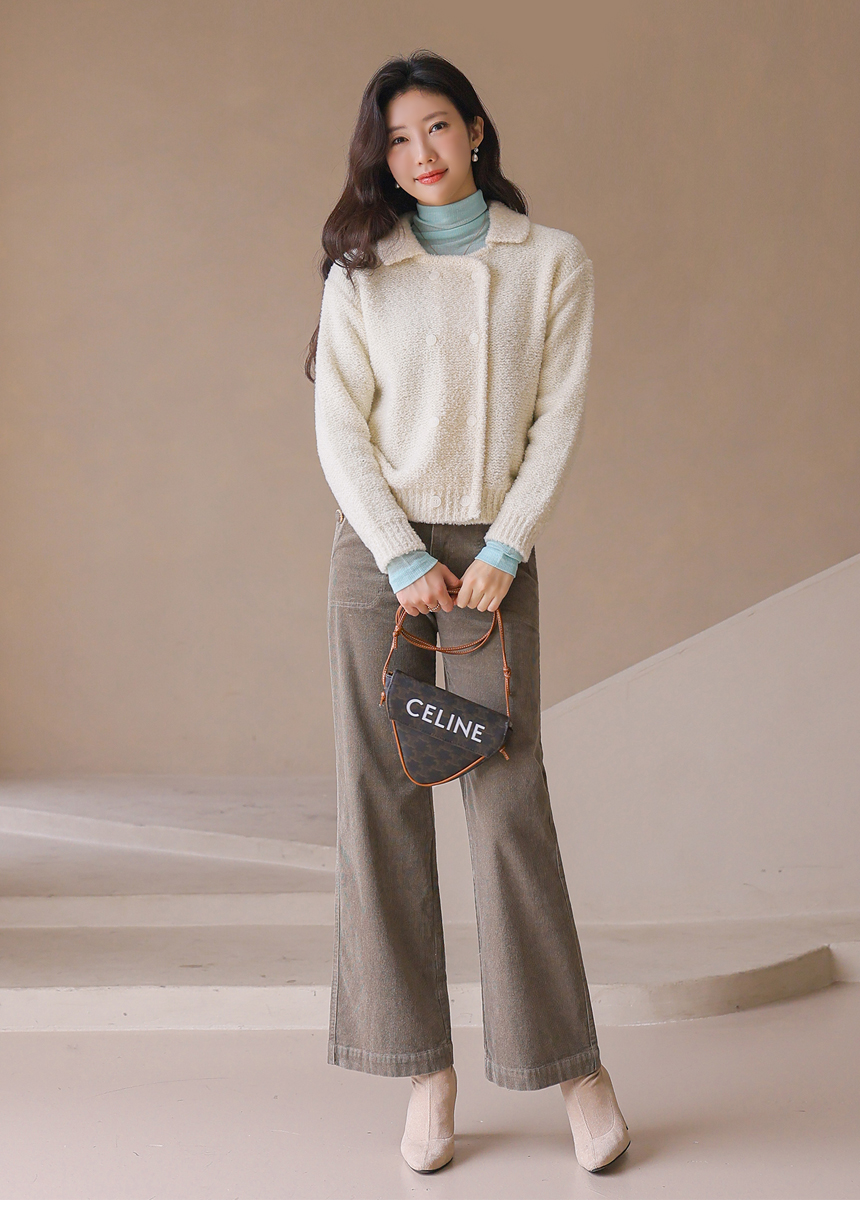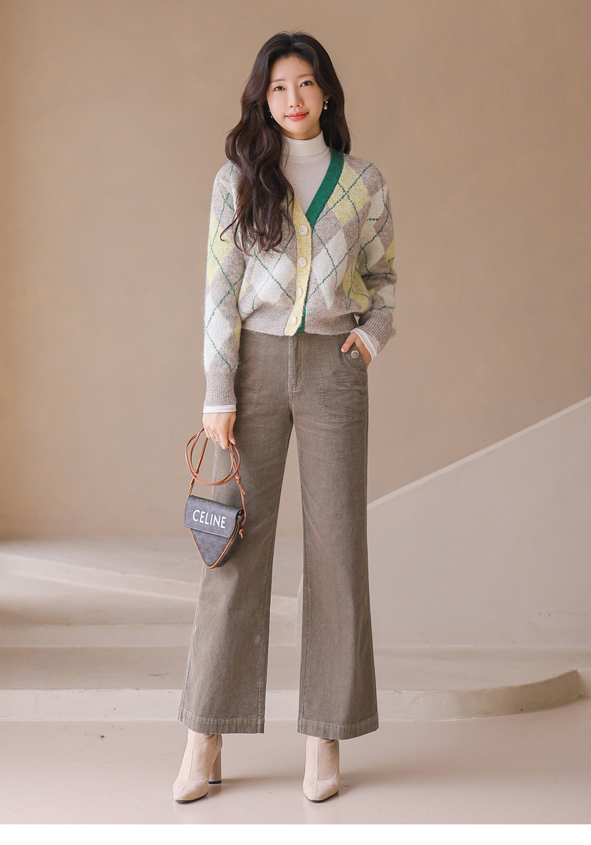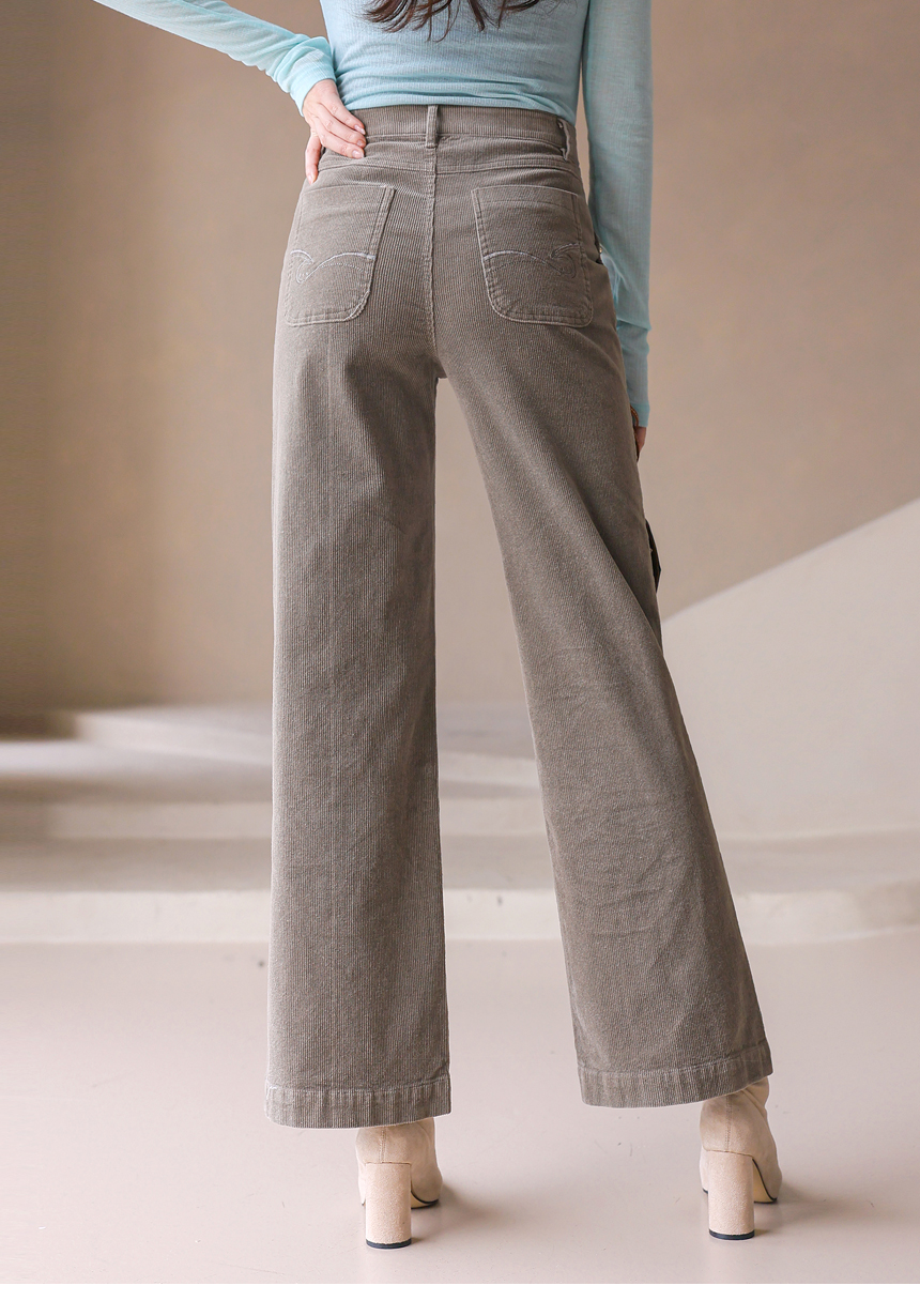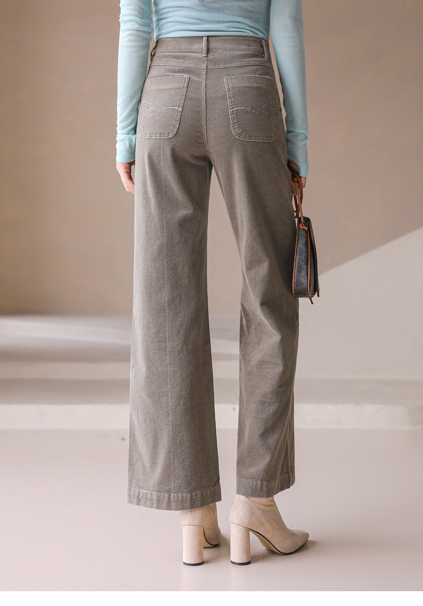 올리버 버튼 포인트 포근 웜터치 코듀로이 세미 와이드 일자 팬츠