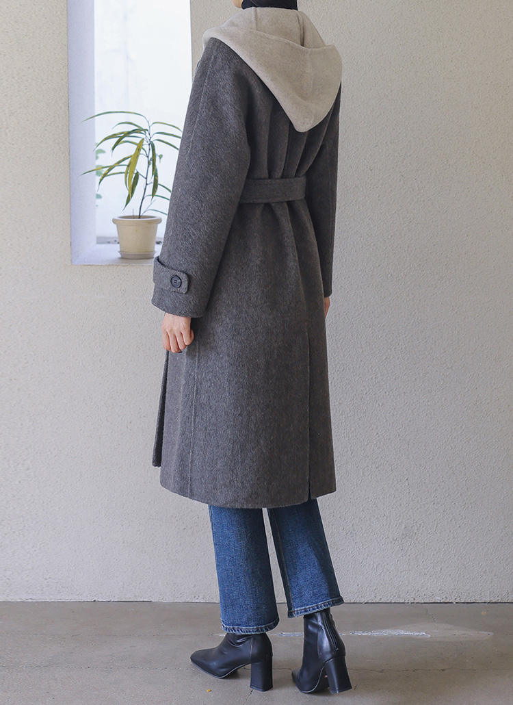 [Theonme] 탈부착 후드 울100 톡톡 고퀄리티 핸드메이드 코트