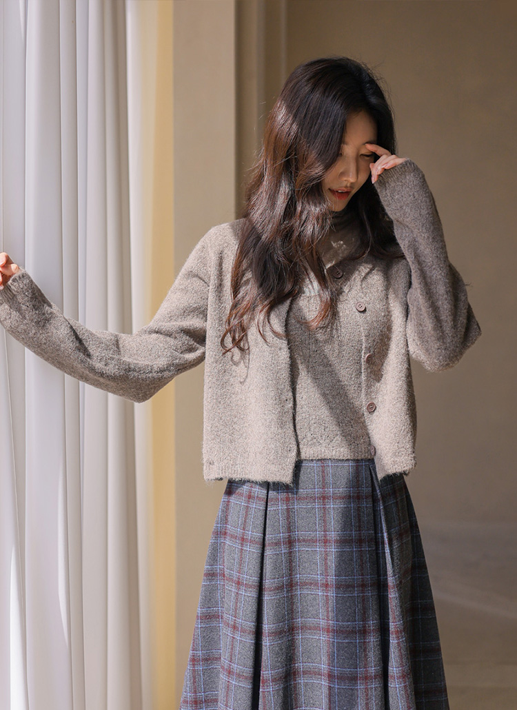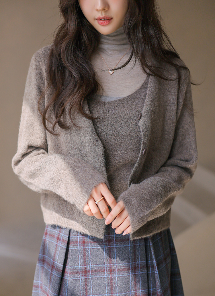 클라라 울 블렌딩 포근 터치감 헤어리 니트 조끼 가디건 투피스 세트