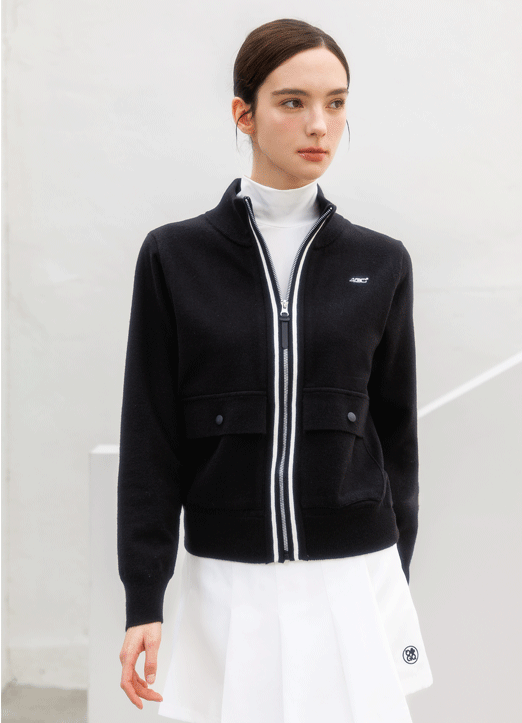 • [QoG] 골프 허리스트링 패딩 배색 울 집업 후드 점퍼_3color