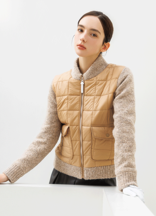 [QoG] 골프 니트 슬리브 퀼팅 후드 점퍼_3color