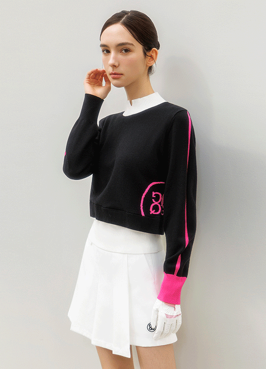 [QoG] 골프 하이넥 배색 스타 집업 니트 가디건_2color