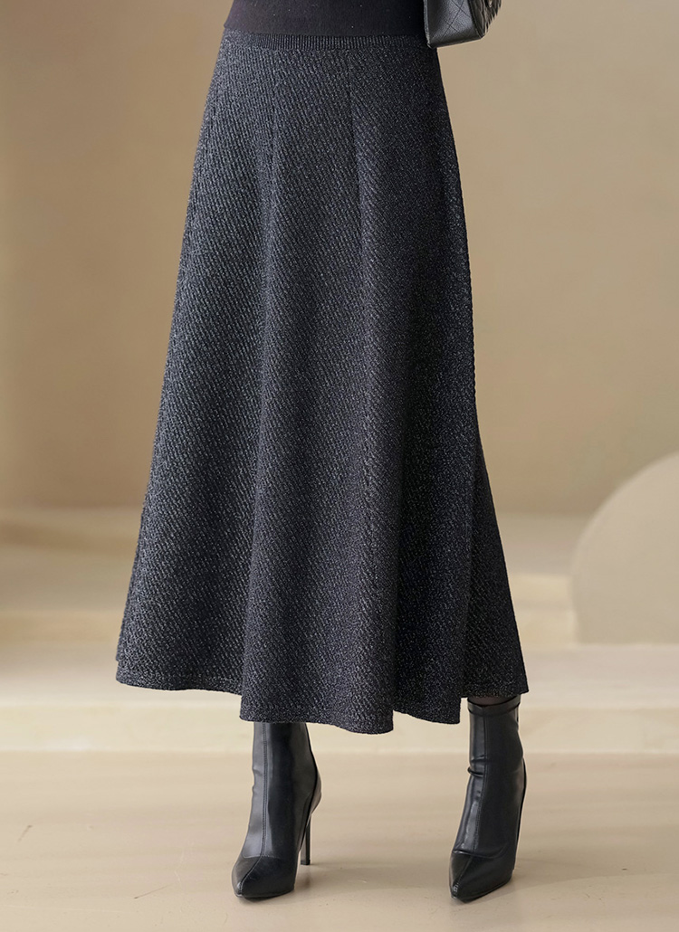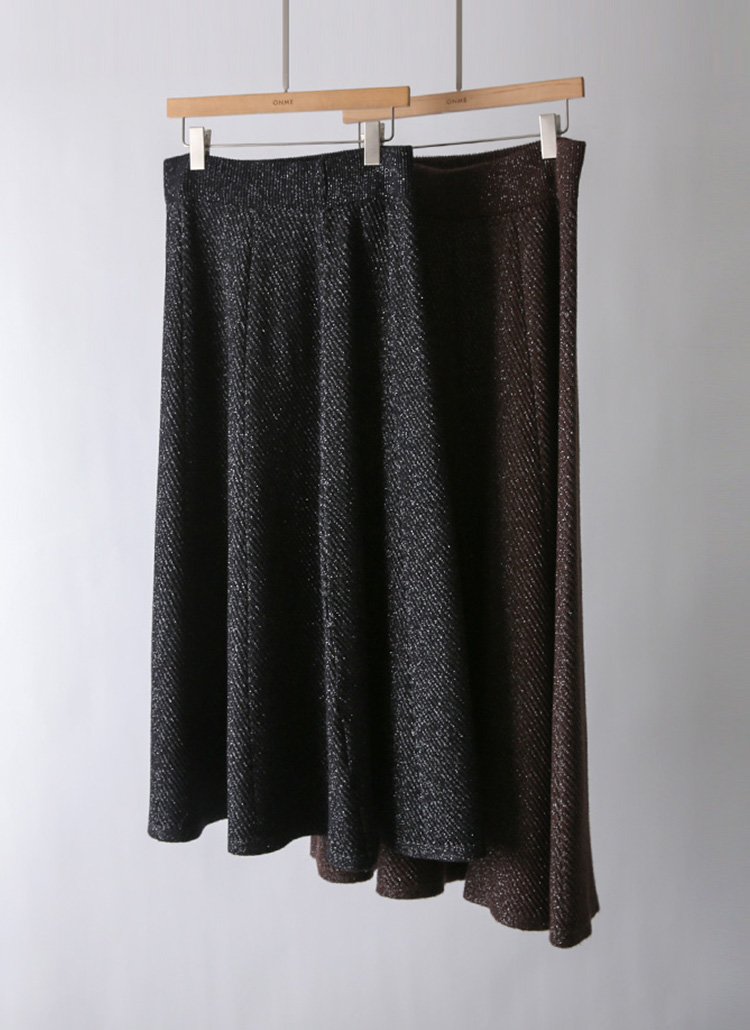 유즈린 샤인 펄 믹스 A라인 플레어 드레시 롱 니트 스커트