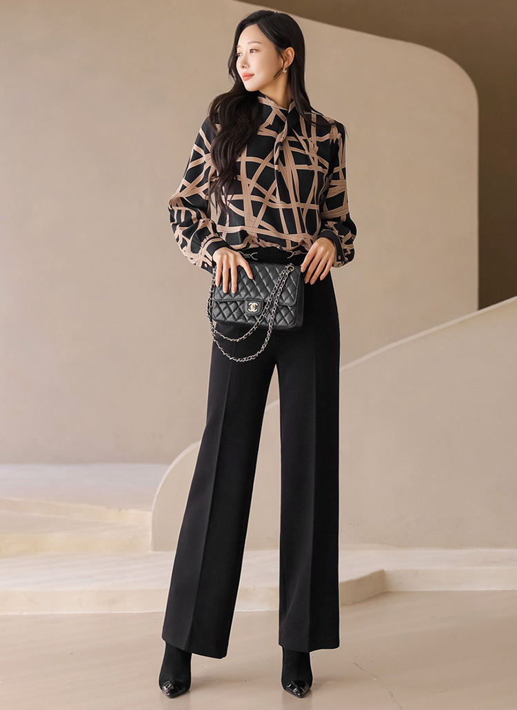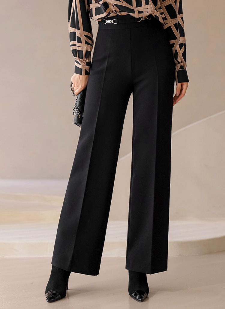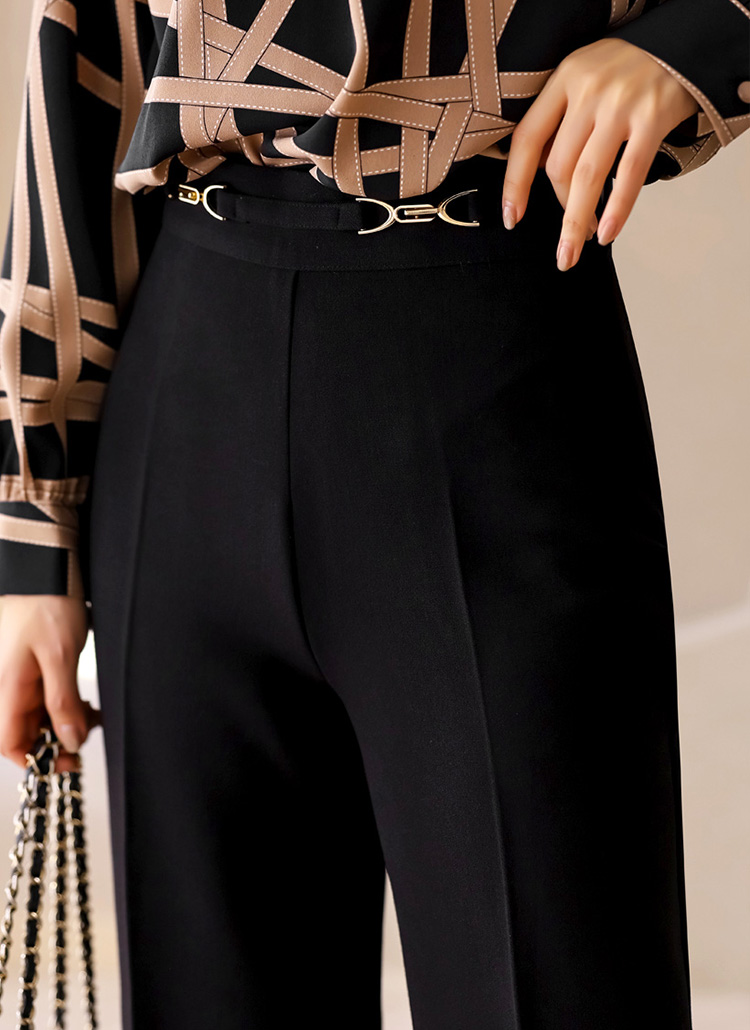엘르간 럭스 금장 체인 디테일 일자 세미 와이드 슬랙스