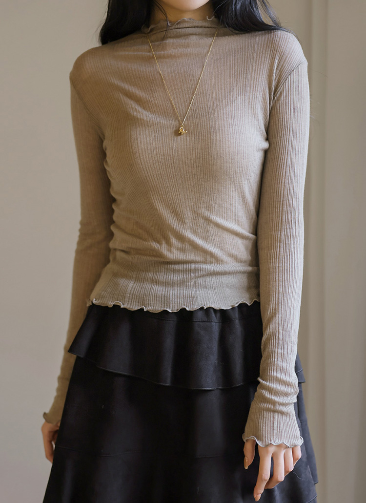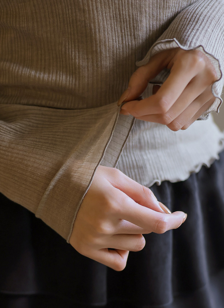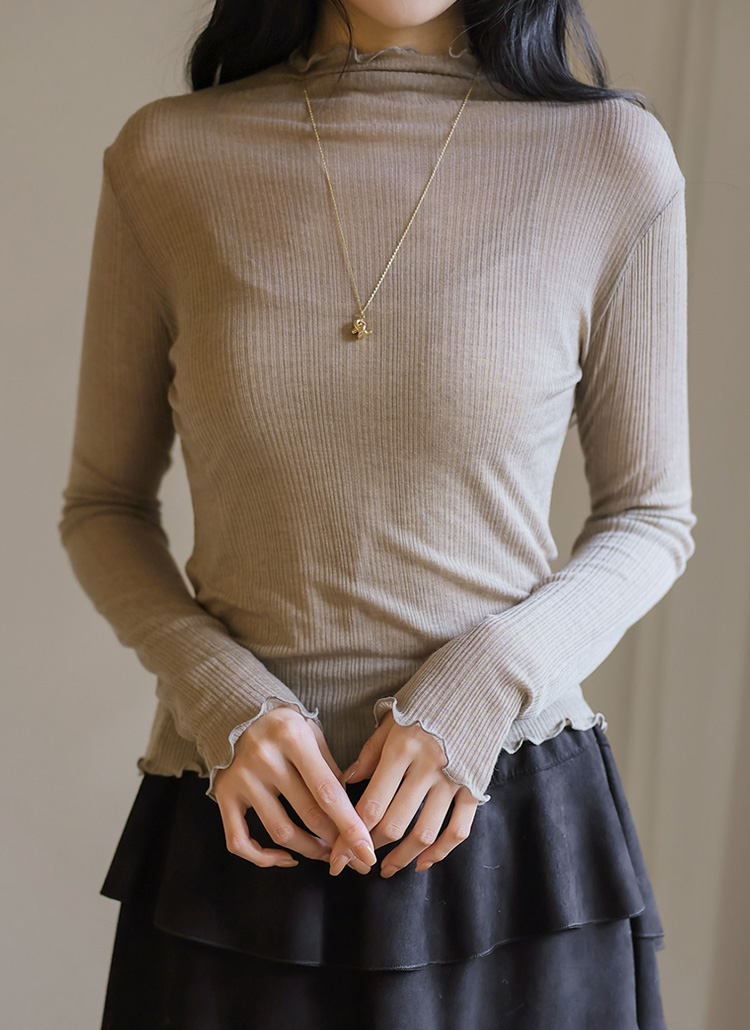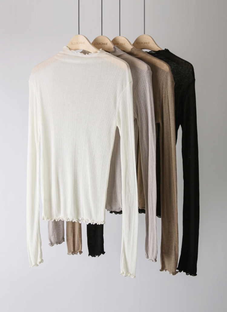 [Theonme] 세이즈 여리 시스루 잔골지 링클 러플 반목 티셔츠