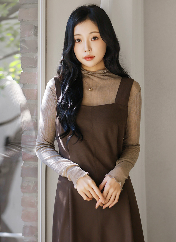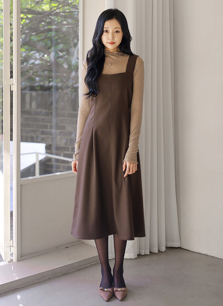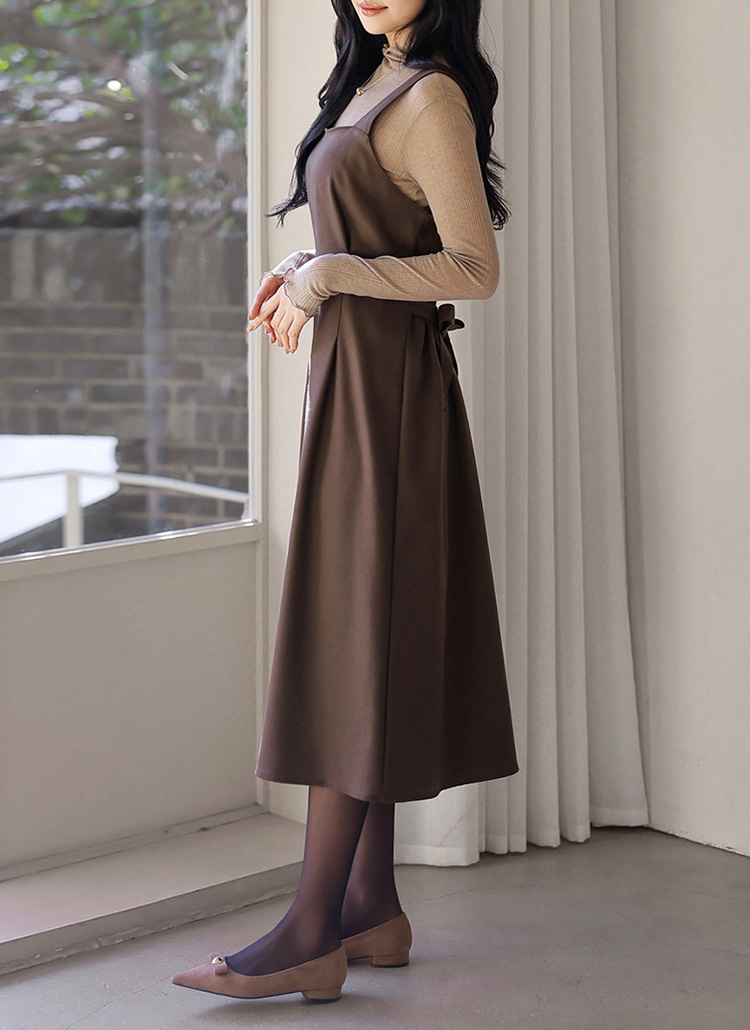 [Theonme] 포블 뒷리본 핀턱 플레어 뷔스티에 나시 원피스