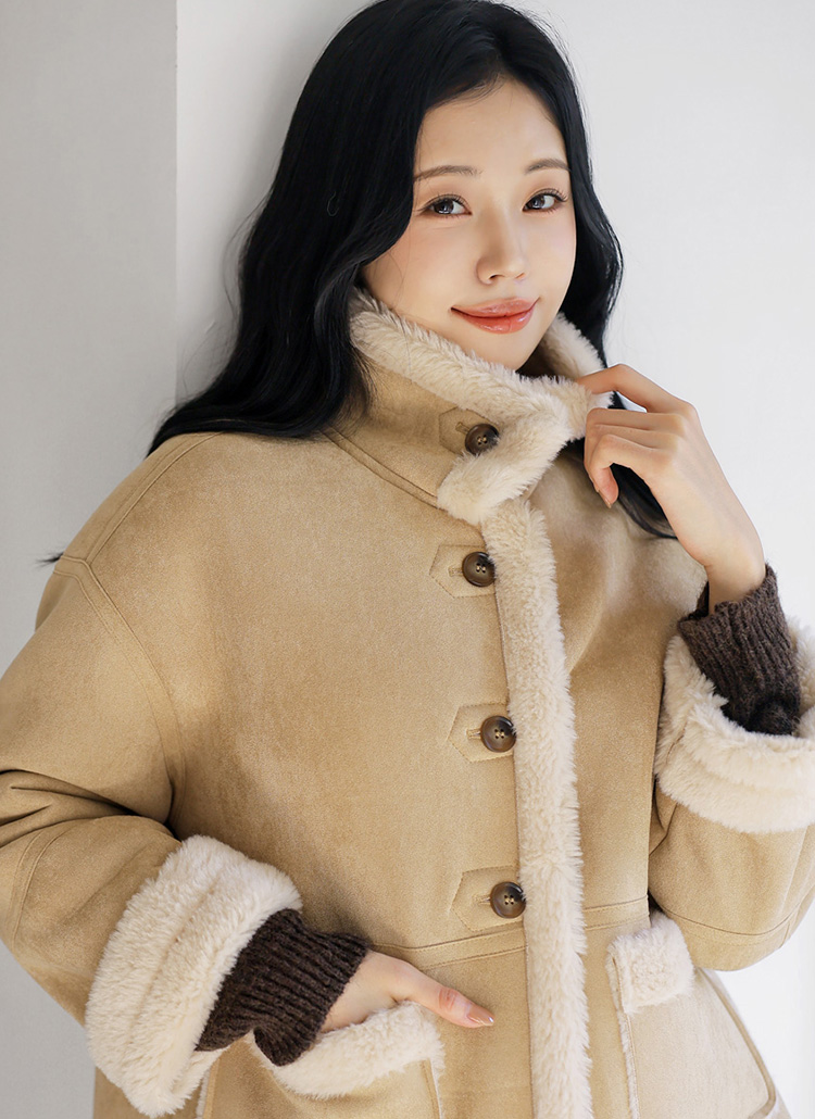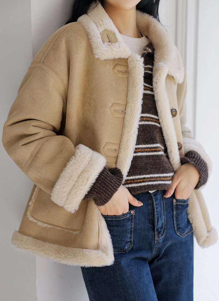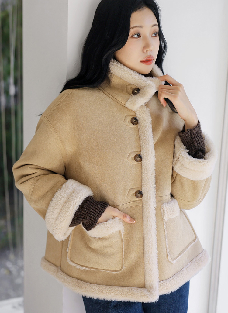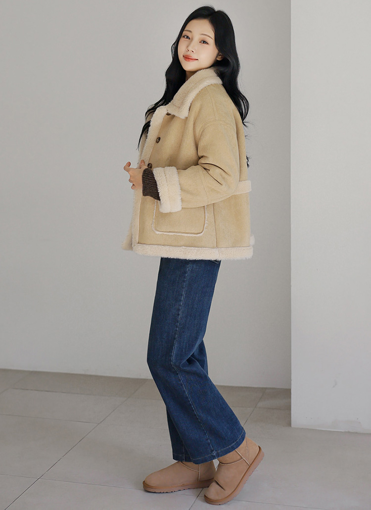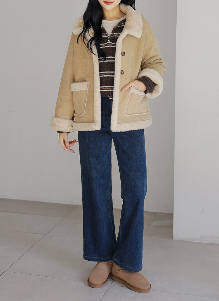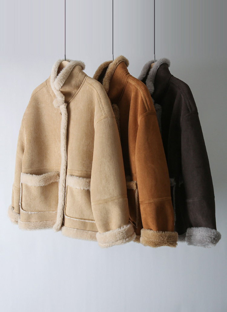 [Theonme] 루엔트 퍼 안감 스웨이드 무스탕 하프 자켓