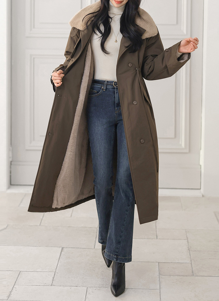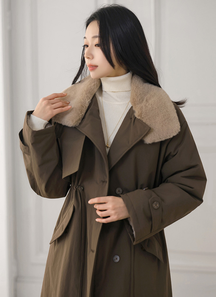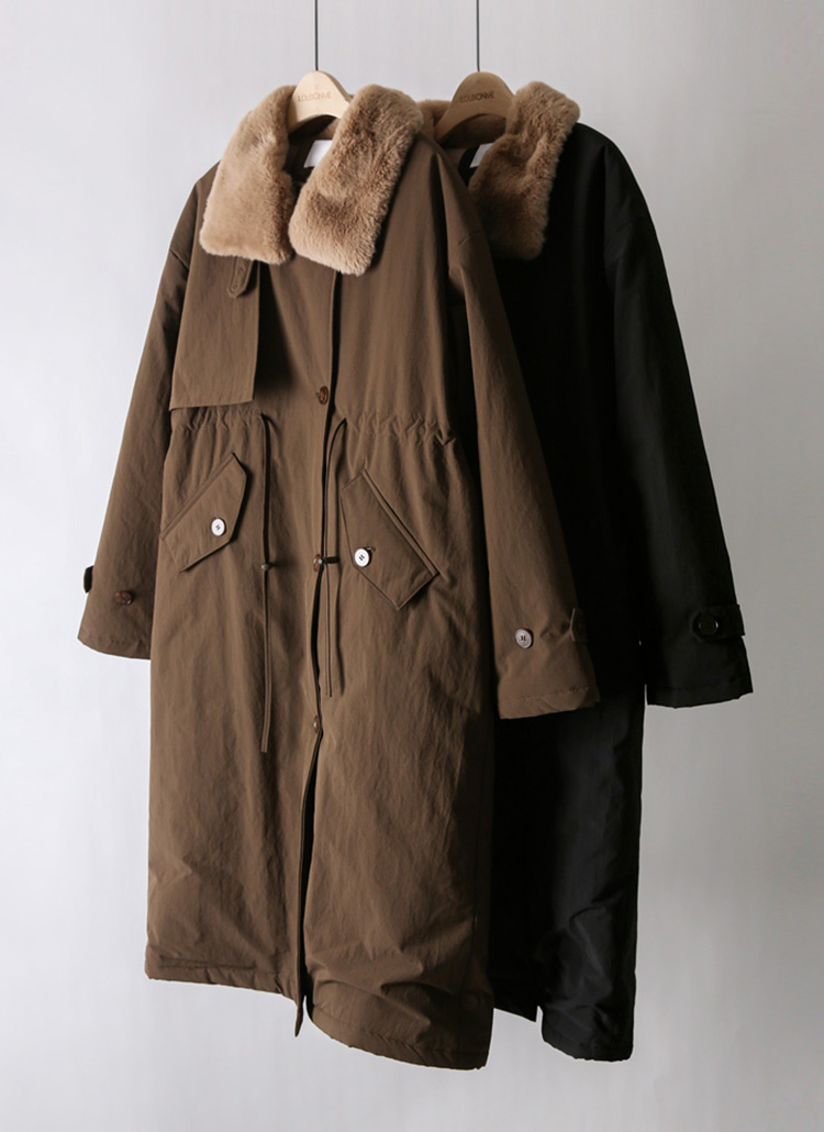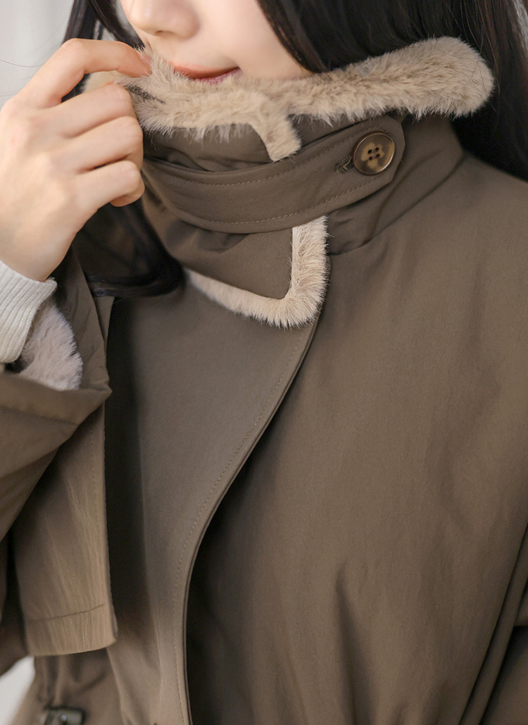 젤리비 래빗 퍼 안감 비죠 하이넥 패딩 코트