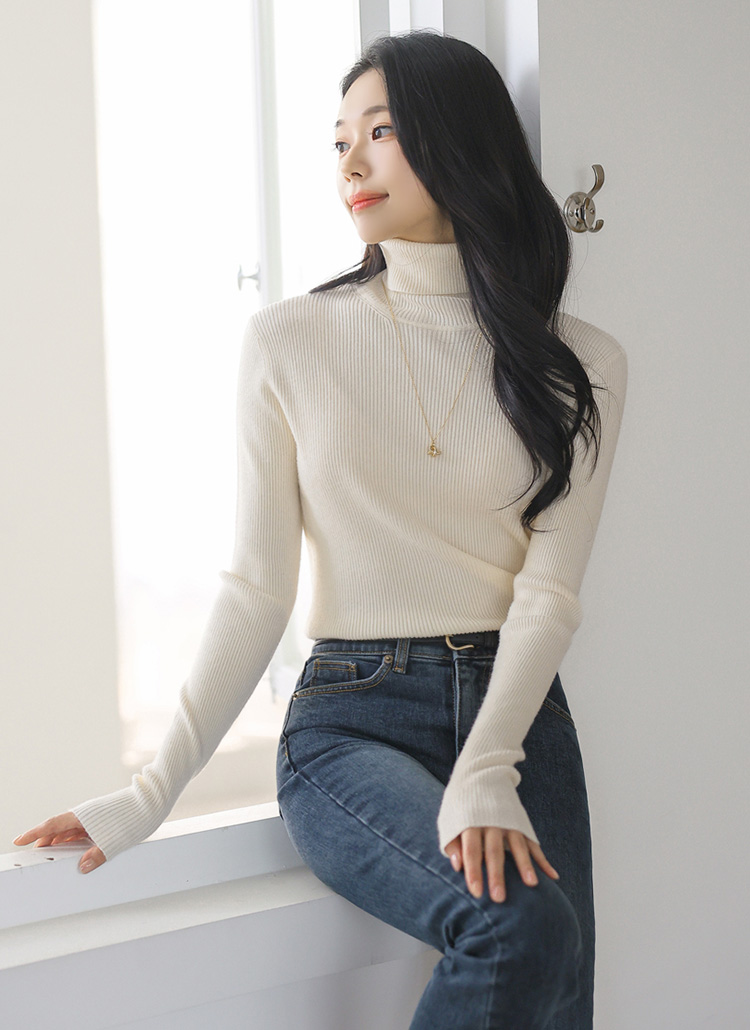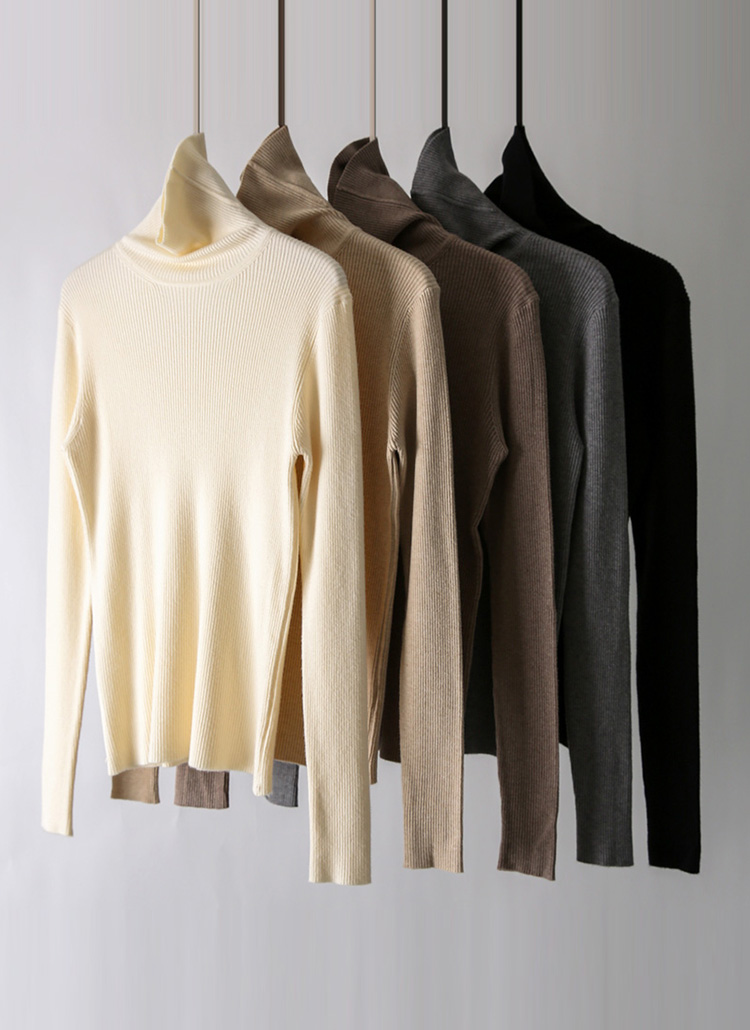 시에트 비스코스 골지 슬림 베이직 폴라넥 니트