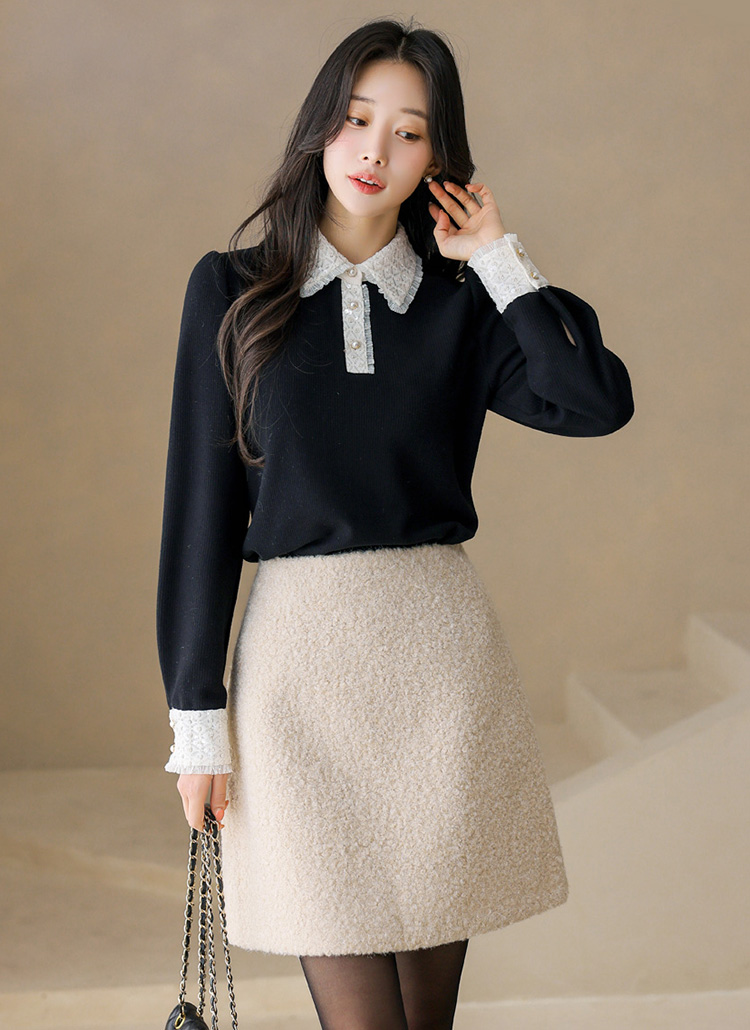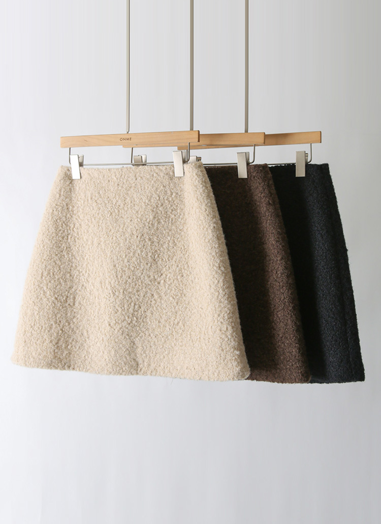 테이사 뽀글뽀글 양털 퍼 4부 세미 A라인 미니 스커트