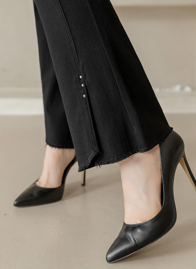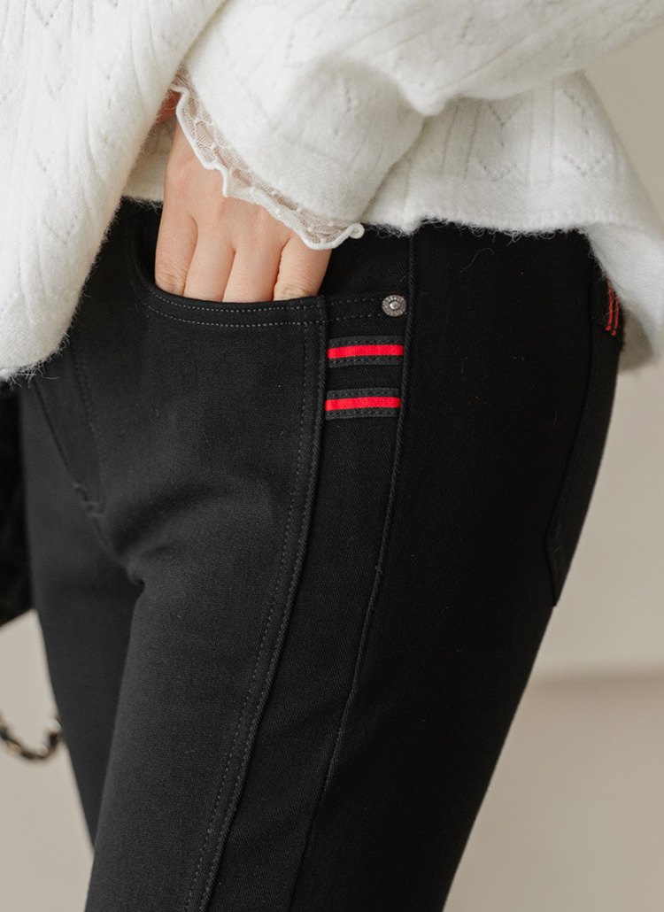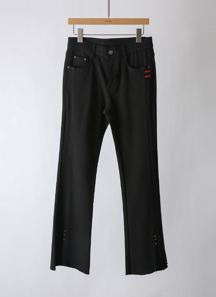 에일르 레드 라인 포인트 쫀쫀 탄력 스판 기모 슬림 부츠컷 팬츠