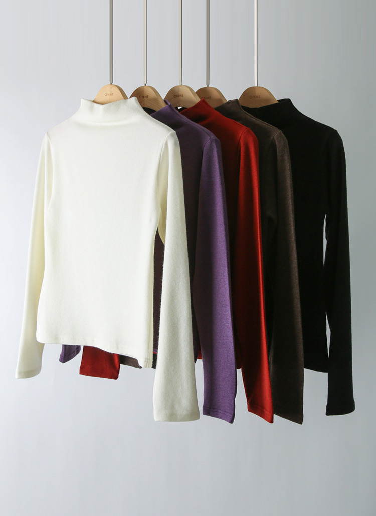 무스빈 보들보들 심플 베이직 기본 반하이넥 티셔츠