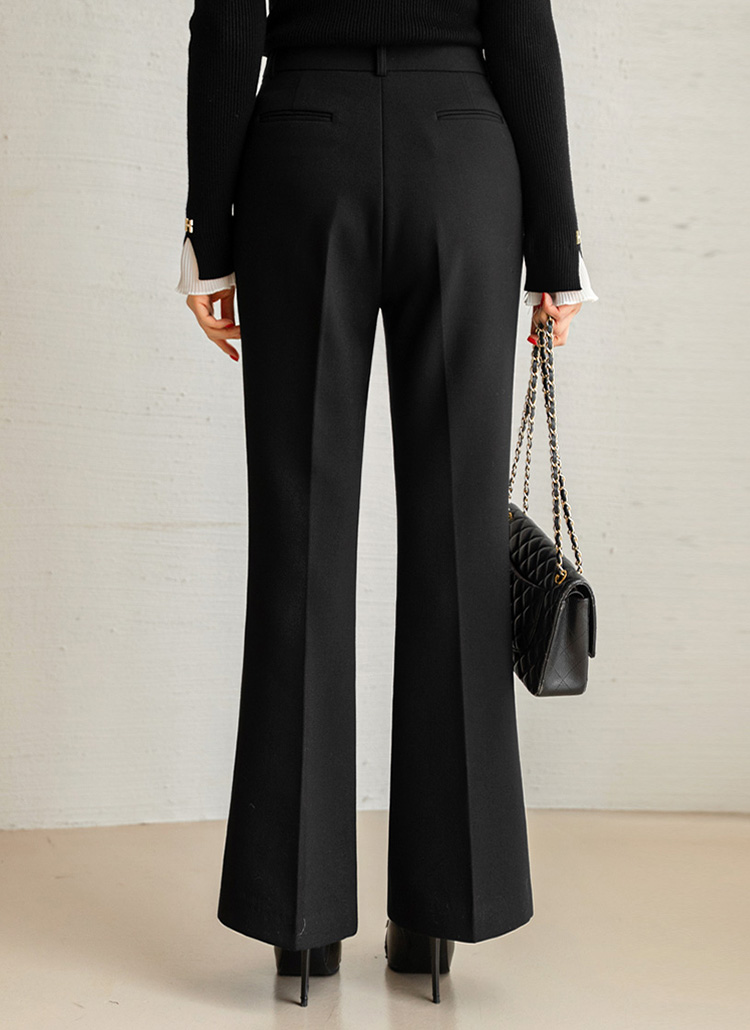 메이엔 사이드 비조 버튼 디테일 슬림 부츠컷 슬랙스 팬츠