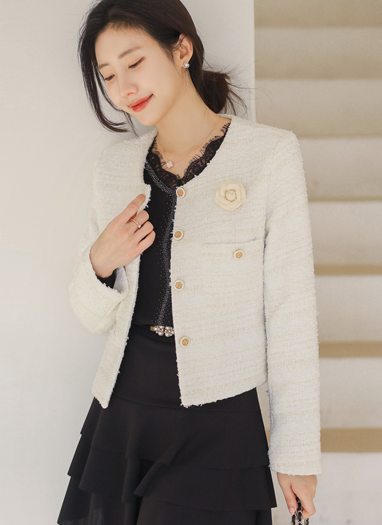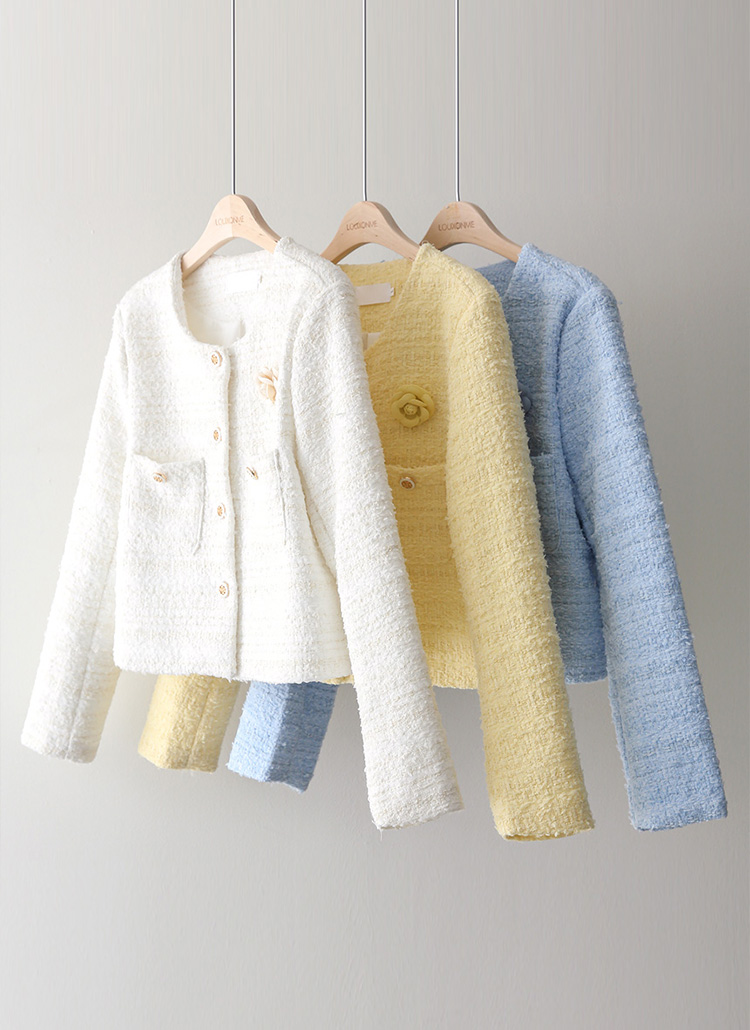 한층 더 우아하고 로맨틱한 분위기를 완성하는 트위드 자켓이에요