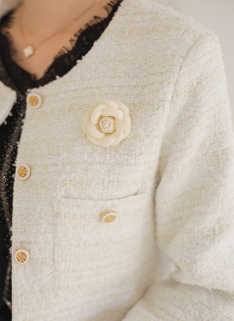 • 라비넬 플라워 코사지 SET 골드 펄 믹스 트위드 자켓